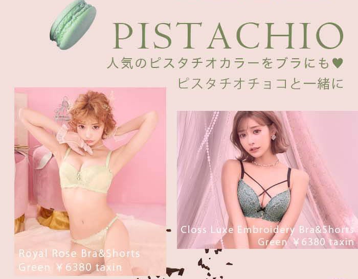 人気のピスタチオをランジェリーのカラーにも♡ピスタチオチョコと一緒に彼へお届け♪