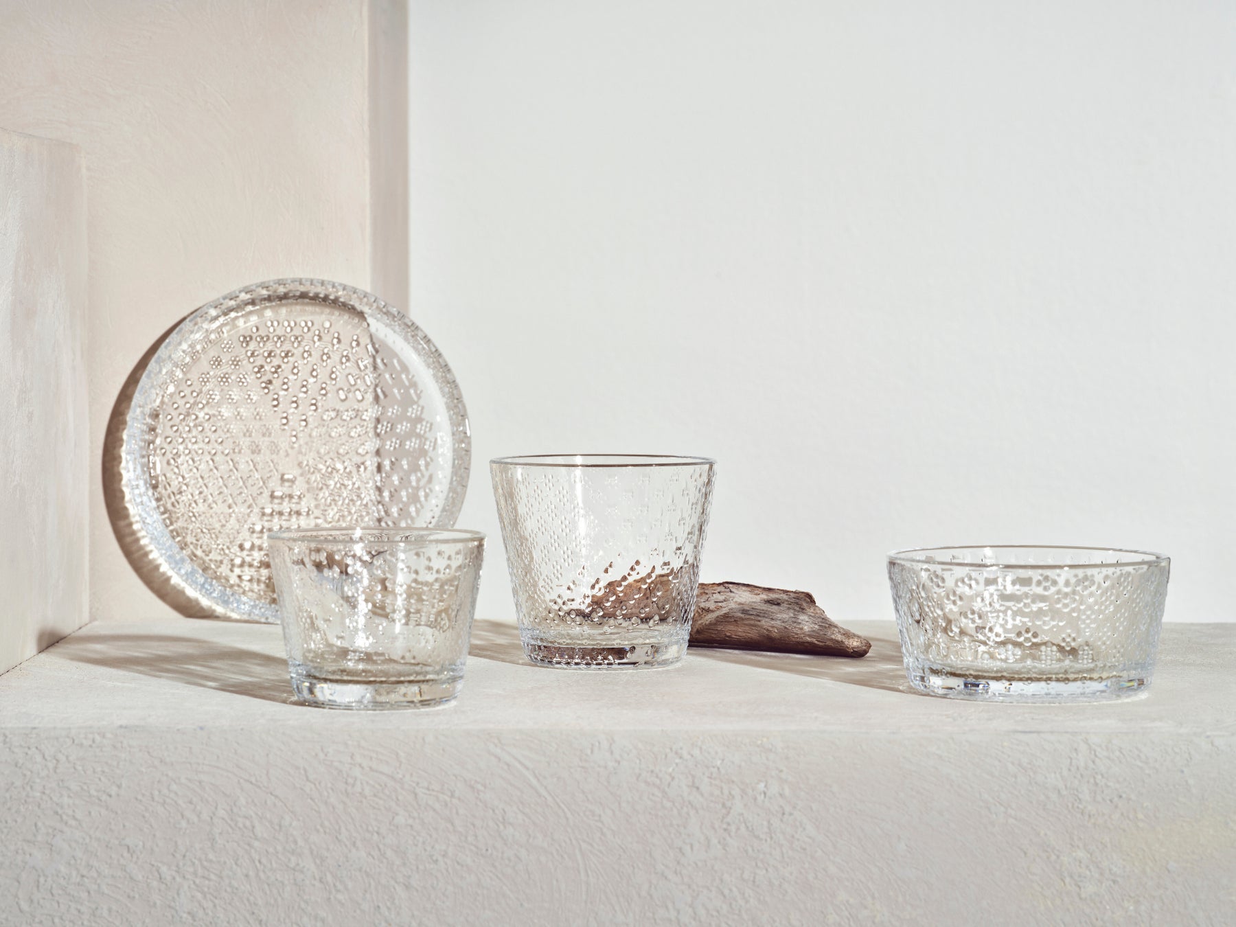 プレートとボウルの計4アイテムで待望の復刻。北極圏の自然からインスピレーションを受けてデザインされた「ツンドラ」はガラスの美しさ、繊細さを引き立てる細やかで美しいパターンが特徴です。