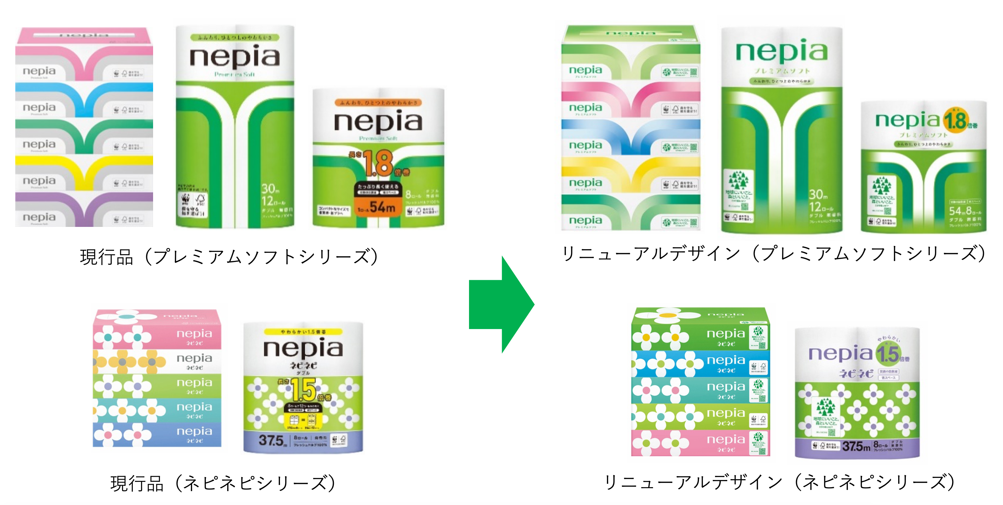 「プレミアムソフトシリーズ」「ネピネピシリーズ」など主力4ブランド38商品パッケージリニューアル