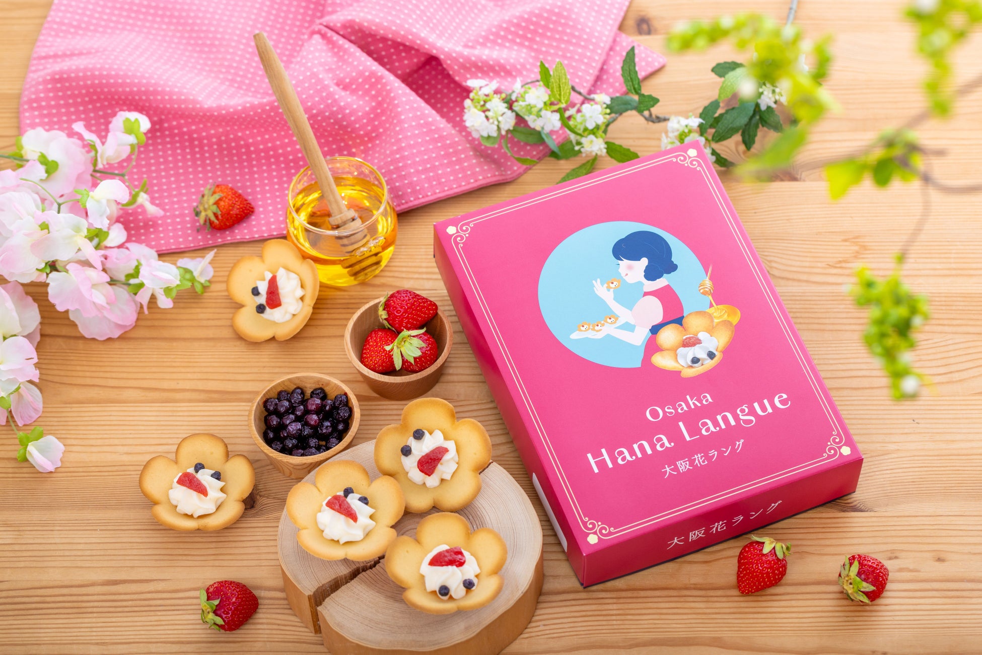 生地には風味豊かな発酵バターを使用し、「卵白をメレンゲにしてから混ぜ合わせる」ひと手間を加えることで、サクサク食感を実現させました。また、「大阪生まれのはちみつ」をたっぷり練りこみ、口にほおばると、はちみつの芳醇な香りがフワッとひろがります。見た目の可愛らしさと美味しさから、「大阪花ラング」は“大阪のテッパン土産”として定番化し、多くの方に親しまれています。