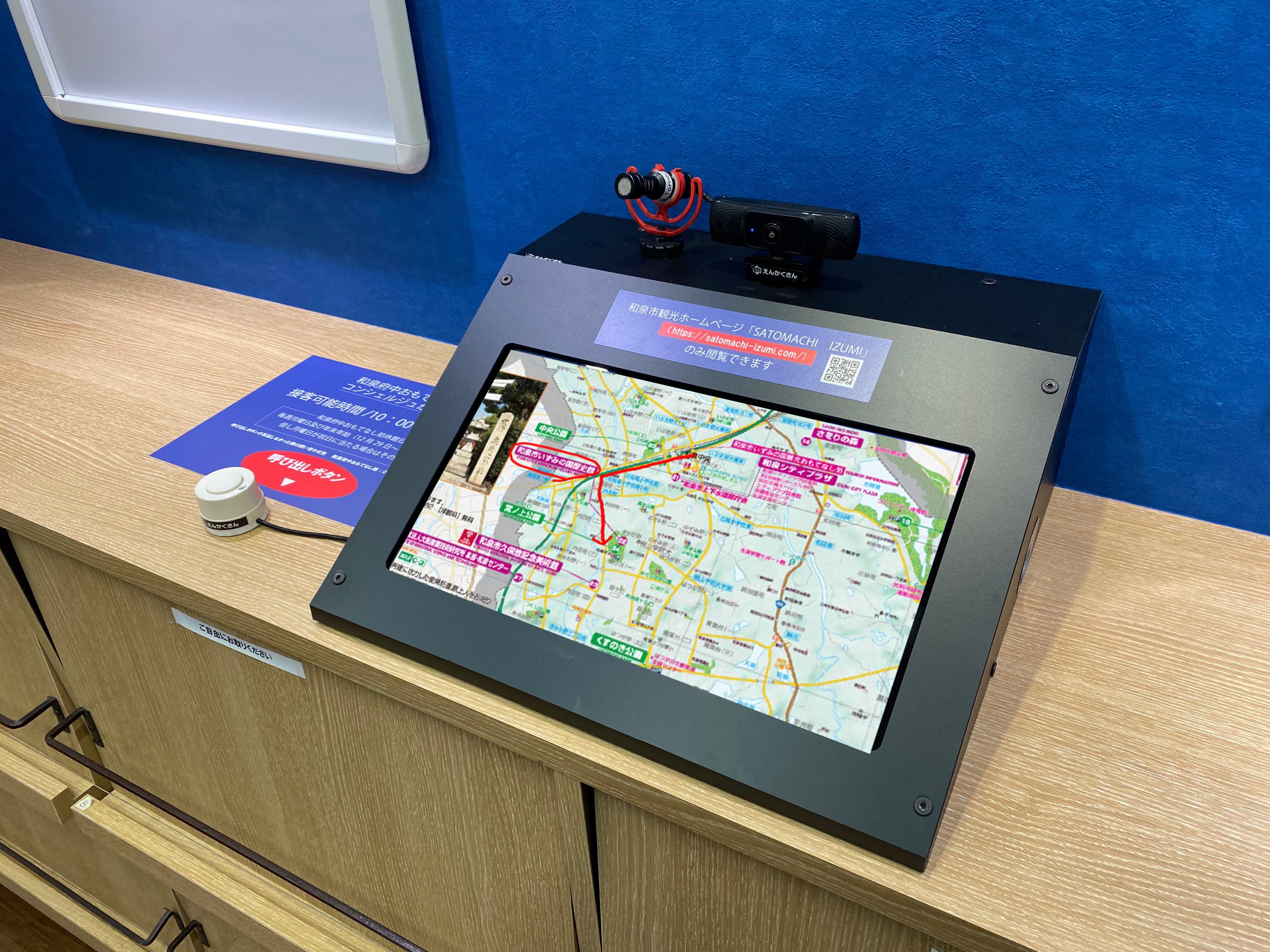 大阪府和泉市で南海国際旅行が和泉市より委託を受けて運営する観光案内所2か所のうち1か所にモニターを設置し無人化。