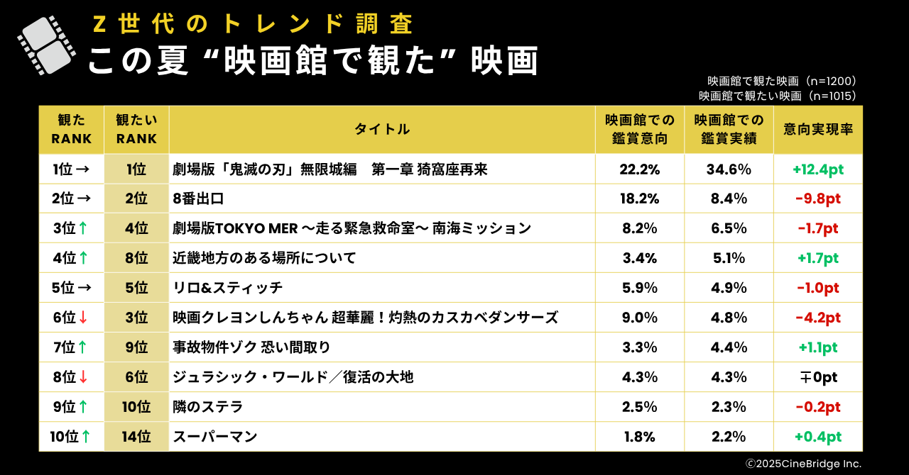 株式会社シネブリッジは、これらの調査結果を基に、映画館をメディアとして最大限に活用し、Z世代トレンドを捉えた効果的なプロモーションを今後も提案してまいります。