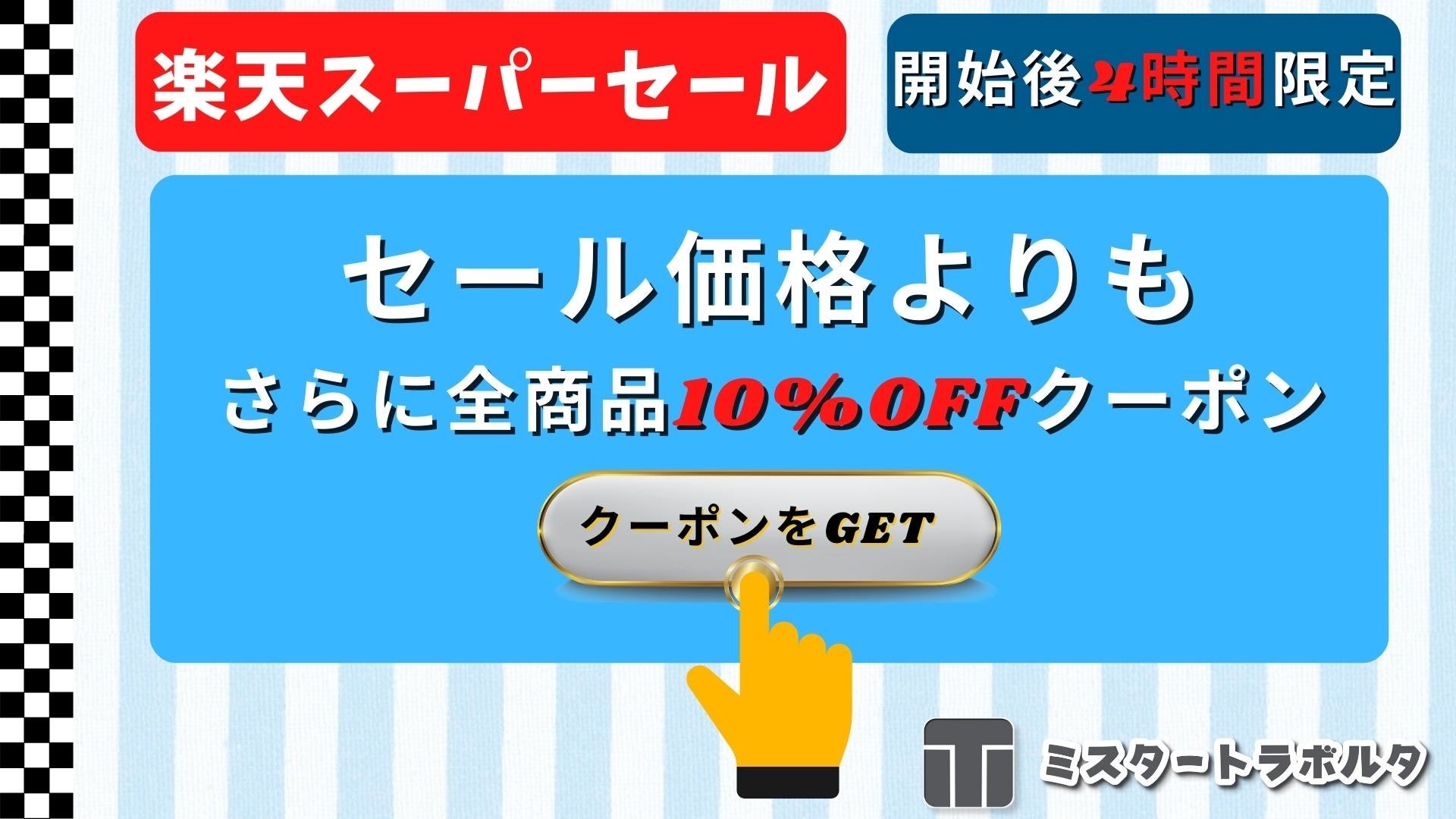 ミスタートラボルタは 楽天スーパーセール期間<6月4日(土) 20:00〜6月11日(土) 1:59 まで>の期間において、弊社の楽天市場ストアにて独自のセールを開催します。
