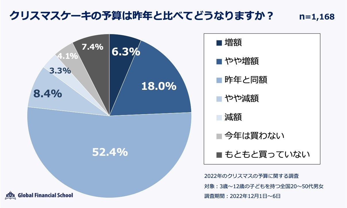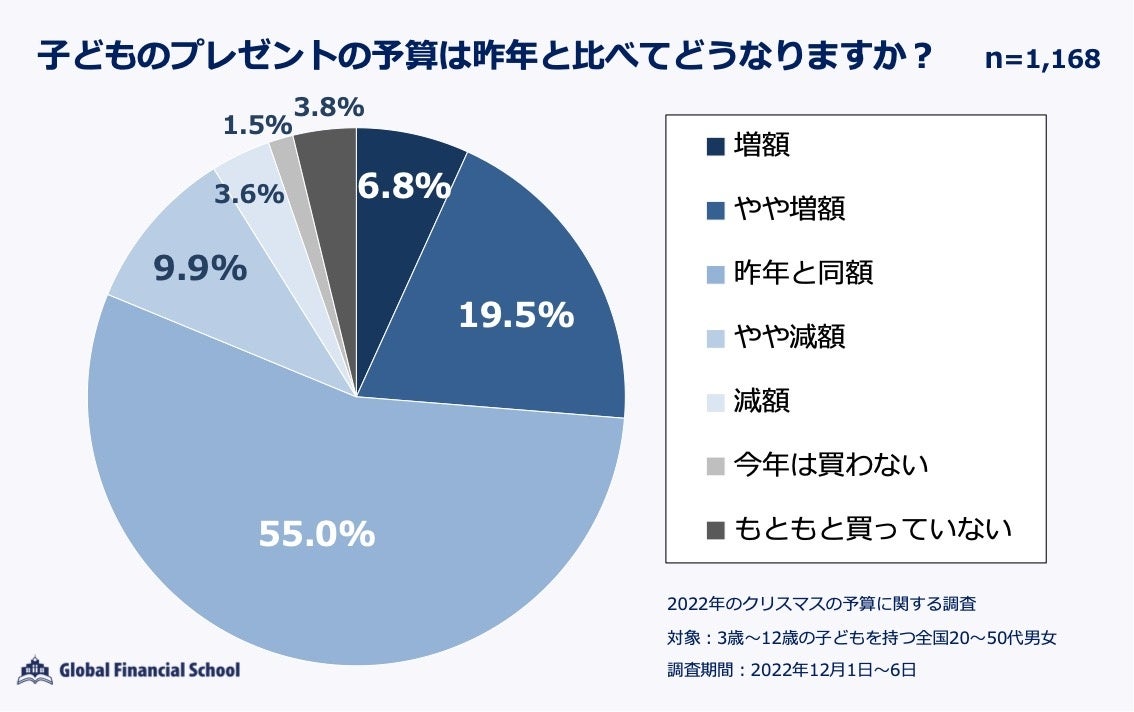 クリスマスプレゼントやケーキの予算、昨年比で、同額・増額が約8割