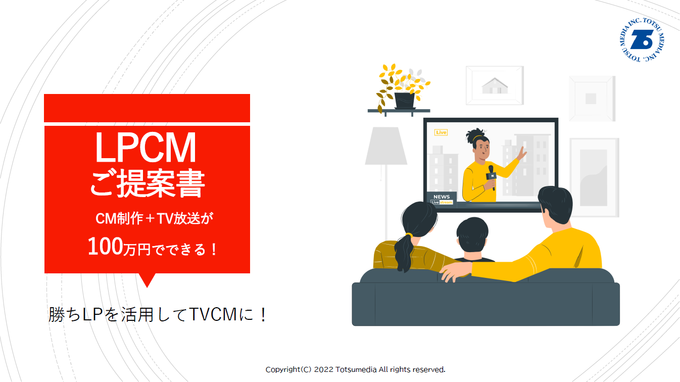 株式会社東通メディア(本社:東京都中央区、代表取締役社長:赤池文孝)は、低価格でテストマーケティングを行い、TVCMにチャレンジできるお得なパッケージ「LPCM」を提供しています。