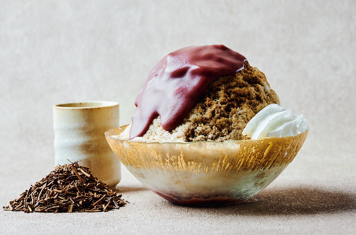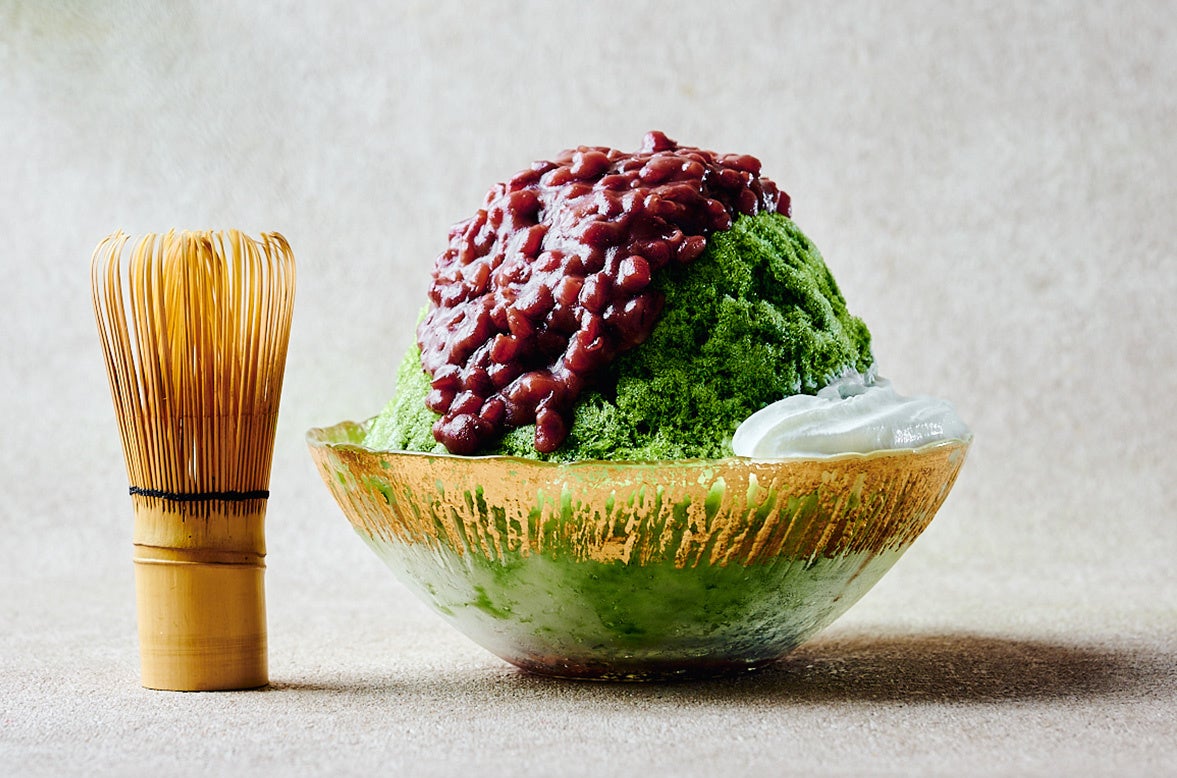 濃抹茶のコクと苦み、ほどよい甘さの餡をたっぷり乗せた「宇治金時」