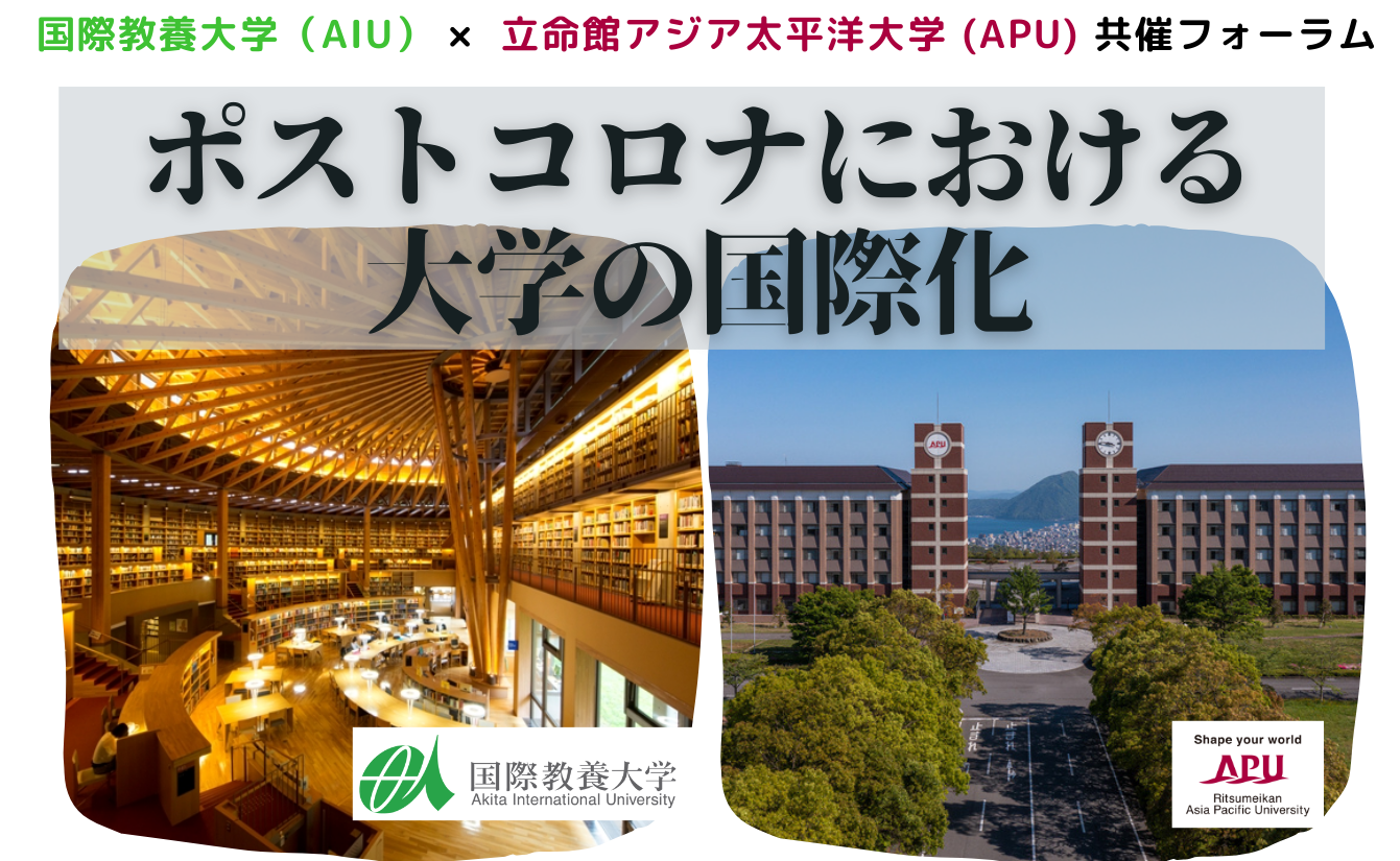 立命館アジア太平洋大学(大分県別府市、学長:出口治明、APU)と国際教養大学(秋田県秋田市、学長:モンテ・カセム、AIU)は、2月25日(土)立命館東京キャンパスにて、「ポストコロナにおける大学の国際化」を共催します。