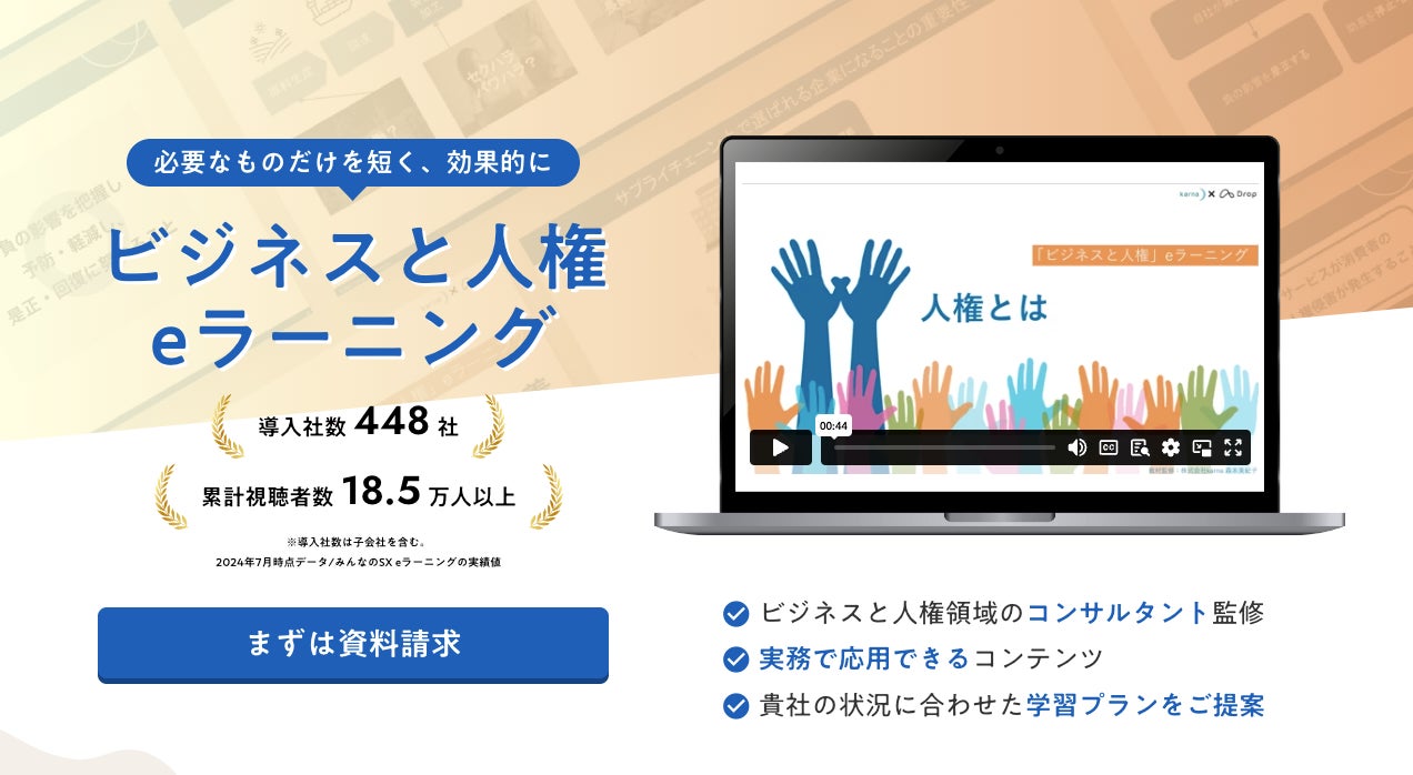 今回リリースした新たな教材に関する資料請求・ご相談は、以下の株式会社Dropが提供するビジネスと人権 eラーニングのサービスページからお問い合わせください。