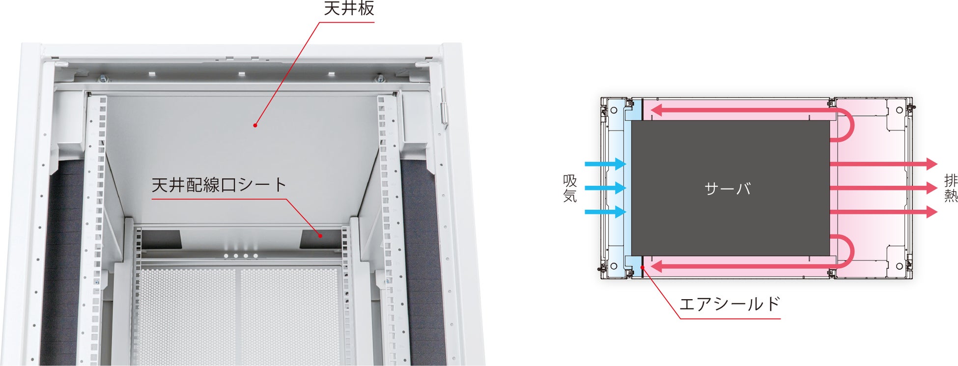 【熱対策】サーバに最適なエアフロー環境を提供し、空調効率の最大化を実現します。