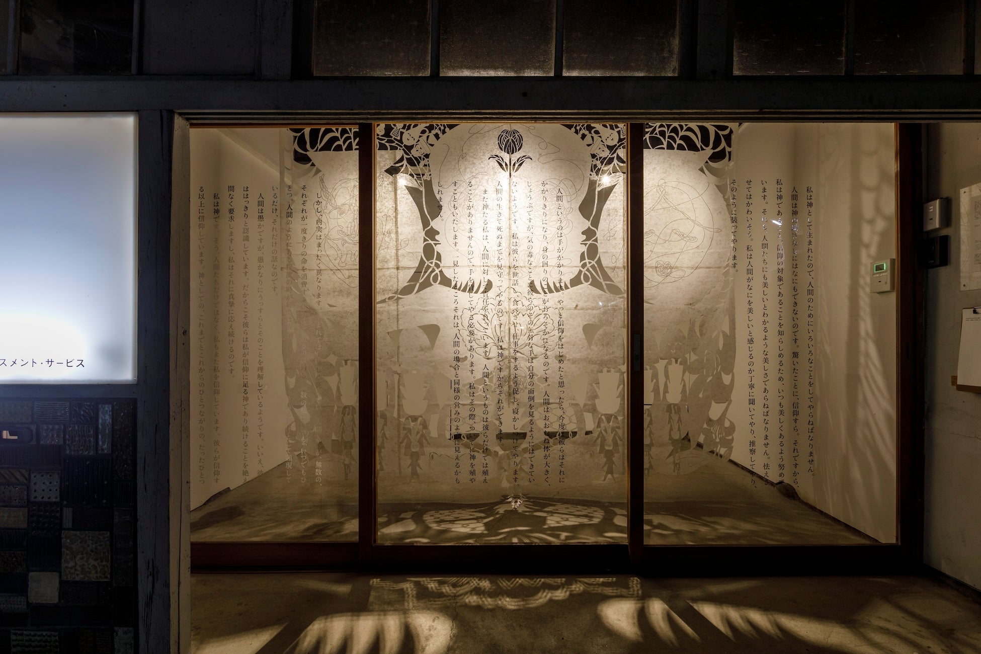 さて、あらためまして本展『多声性のトーチ』では、国内外の文化的ネットワーク上で宗教美術・文化財伝世としての模写・手技が持つ感覚を追体験する正垣雅子、大量生産品によるモニュメンタルな対称的全体の中に隠匿された非対称的部分を体系的に可視化する香川裕樹、切り紙や言葉によって現在という歴史の中で抑圧する/される主体たちの匿名的な現れと対話をする青木きらら、視線とその先にある媒介物としてのモノを通して今ココの時間と記憶に転換を促す東畠孝子、地理的・社会的・心身的な辺境を通じて外部化された生存権を自己へと回帰させ拡張を試みる八幡亜樹、以上5組のアーティストによるインスタレーション作品が展開されます。