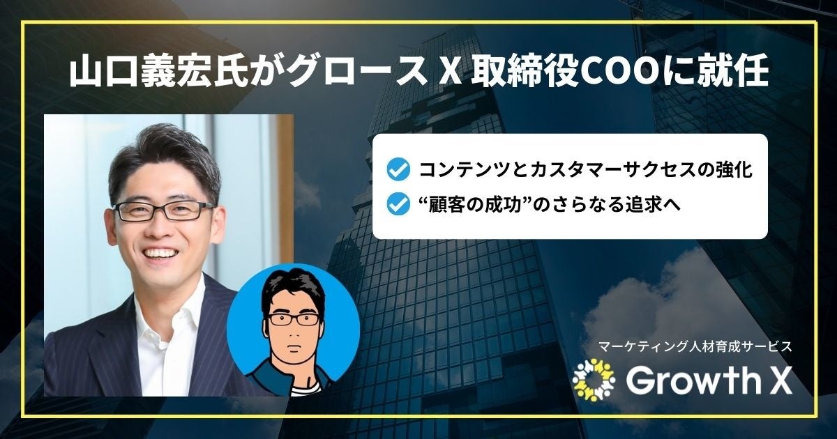 そこで、マーケティングのキャリア本の出版などこれまで山口氏が続けてきた活動と、グロース Xの未来の相性が良いと判断し、このたびの取締役COO就任に至りました。