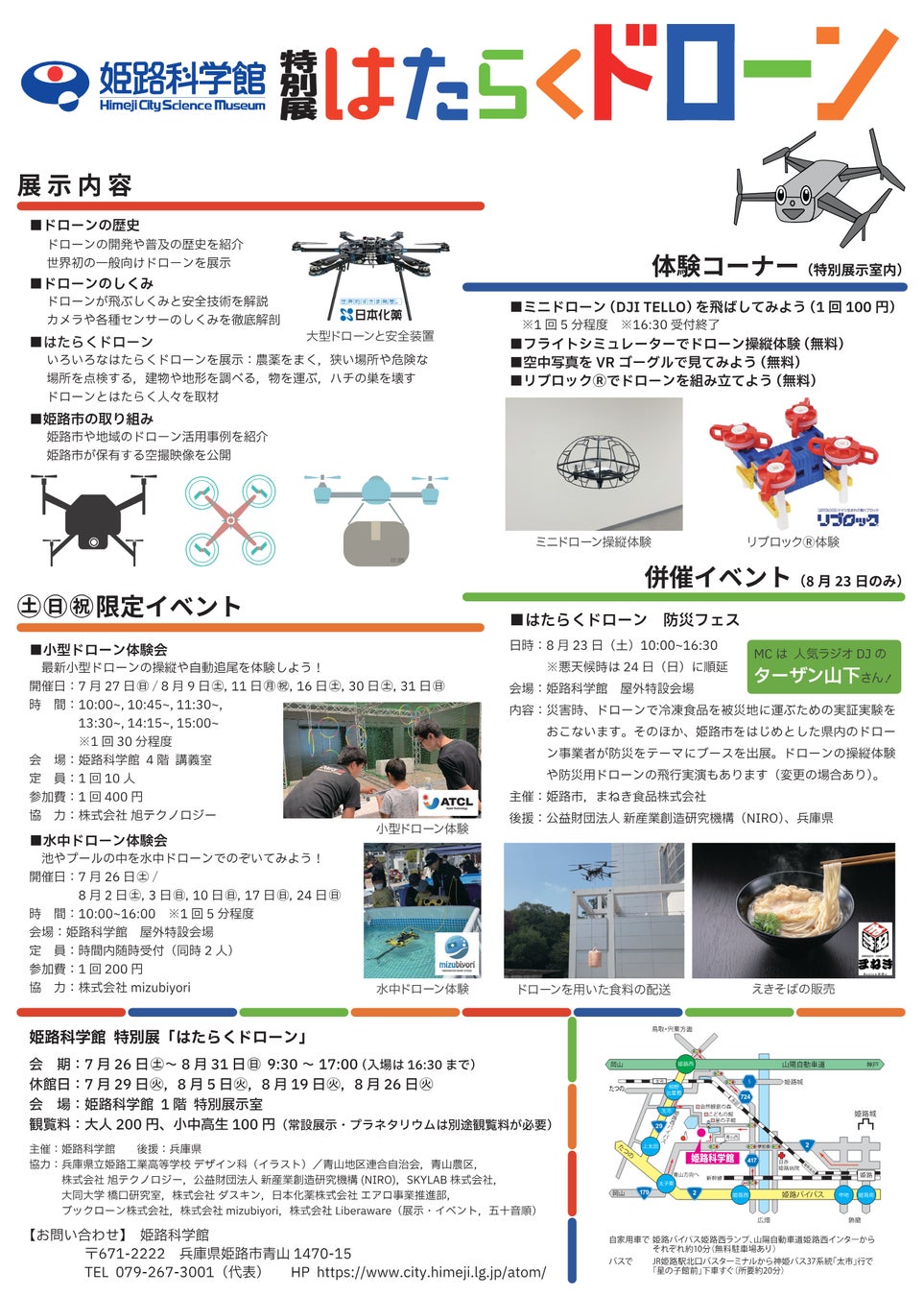 7/26~8/31日 夏休み特別イベント「はたらくドローン@姫路科学館」開催! 飛ばして学ぼう!