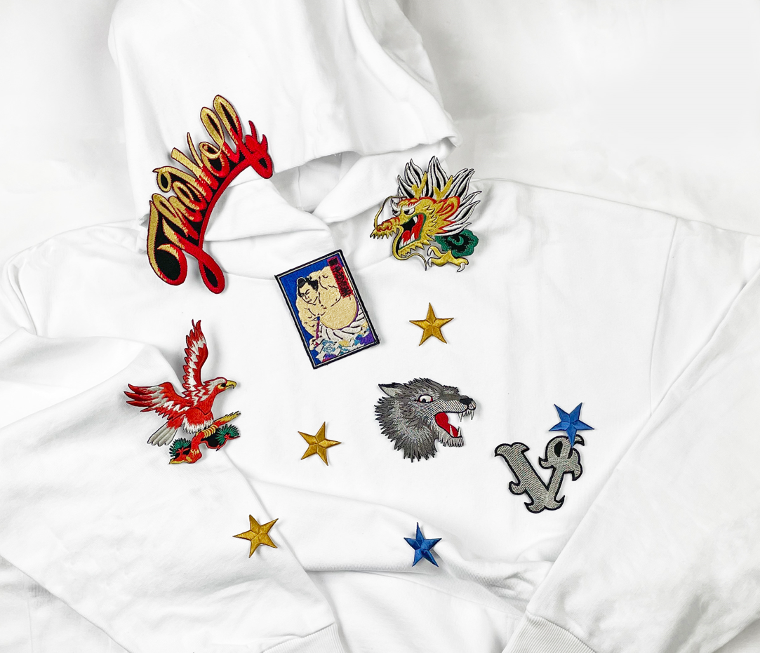 クチュールがコンセプトだった第一弾、モードがテーマだった第二弾のコラボレーションを経て、第三弾はストリートの気分を表現しました。本イベントでは、今回のポップアップのために制作したグラフィックTシャツや、千代の富士関の浴衣の生地をパッチワークした、2点限定のスペシャルな開襟シャツ、また前回好評だった刺繍のTシャツはシルエットを新たに。ポップでジェンダーレスなラインナップで展開しています。また、今回のために特別にご用意したワッペンを、フーディに自由にカスタムできるスペシャルイベントを実施し、デザイナー丸山敬太と、秋元剛がお手伝いさせていただきます。