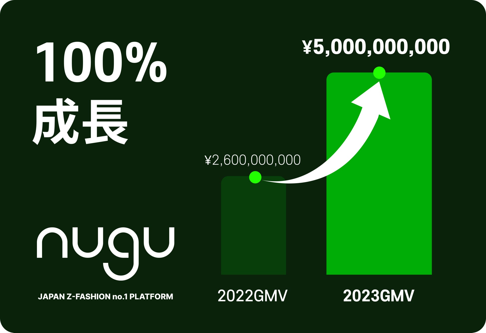 nuguは2023年のGMV(取引総額)が50億円を達成したと発表した。これは2022年の25億円から100%成長を遂げた結果である。また、2023年12月の売上額も4億円に上り、オープンから3周年を迎えてもまだ衰えない勢いを証明した。