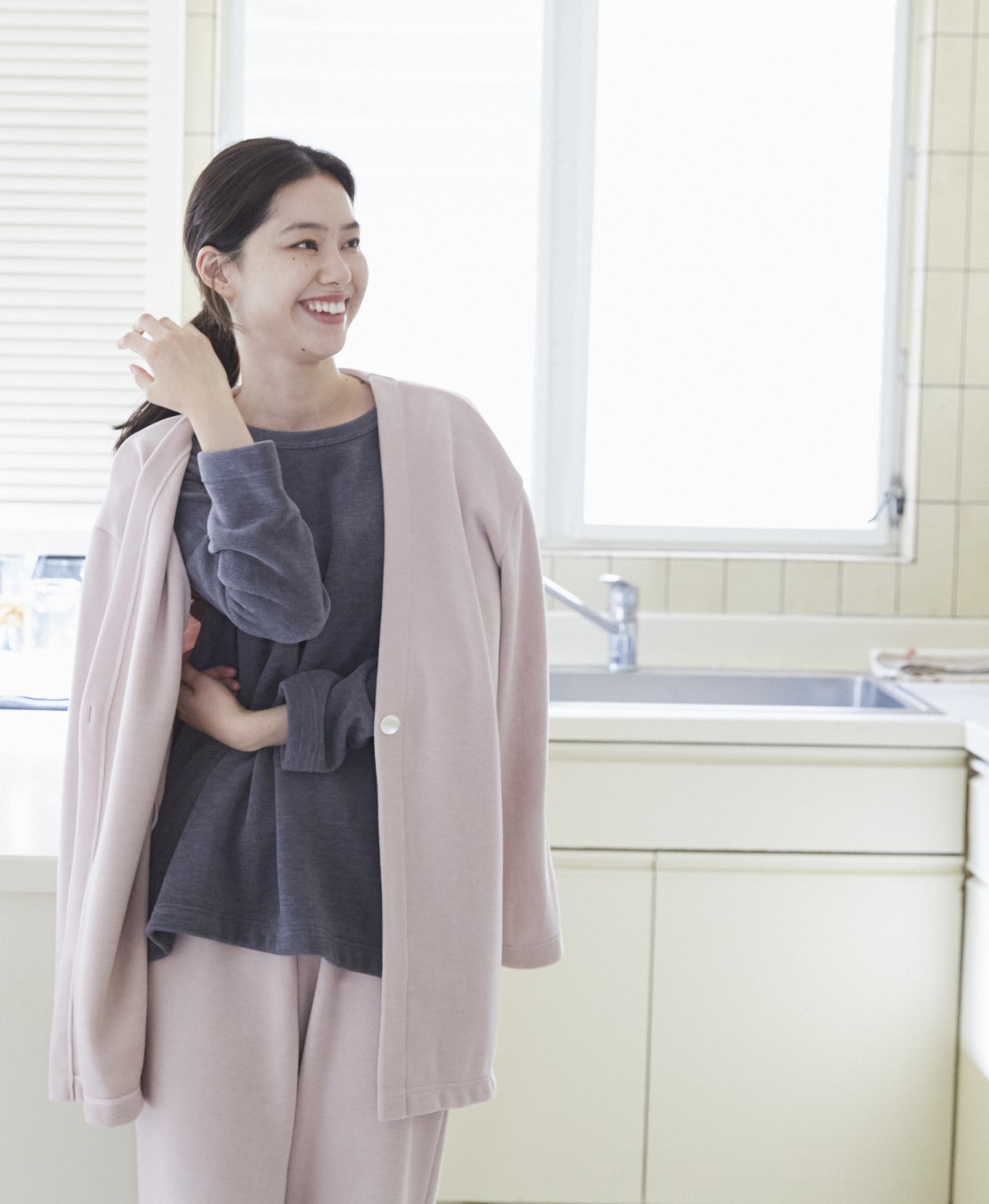 おうち時間をストレスなく過ごせるよう、体を締め付けないゆったりとしたデザインに加え、軽量な付属の使用や、ファスナーの端が肌に当たらない仕様にするなど細部にもこだわり、 “心地よいデザイン”にしています。