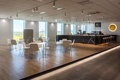 KAWARUBAのカフェスペースは、KAWARUBA同拠点の入居者や来訪客が利用可能であり、会議室も隣接しています。ロボットはカフェから隣接する会議室への搬送を主に行います。