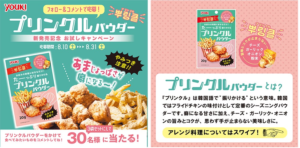 ~新感覚のフレーバーで注目を集める韓国発の魔法の粉「プリンクルパウダー」!チキンやポテト以外にもポップコーン・トッポギなど様々な食べ方も提案~ <インスタグラムキャンペーンも実施>