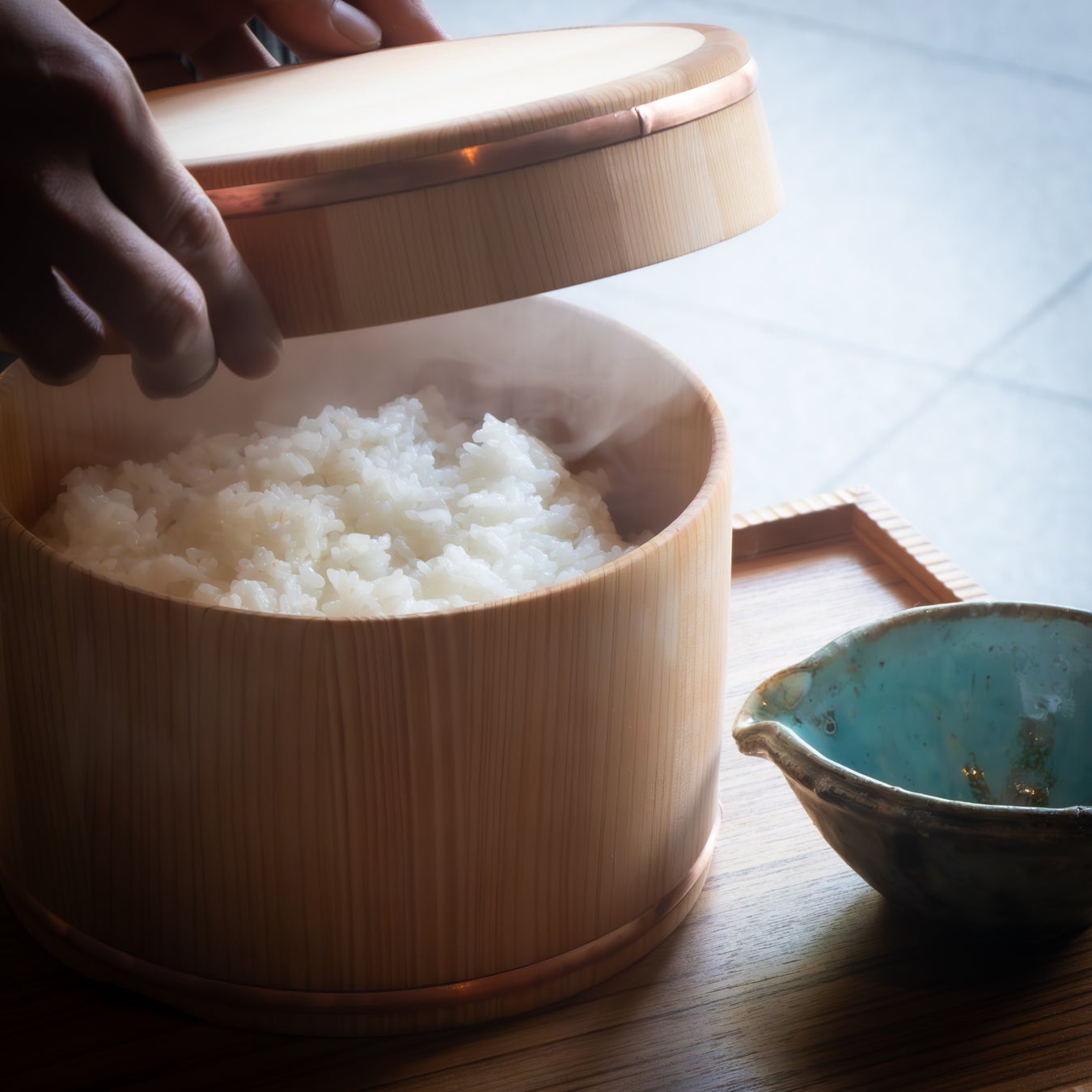 伊勢志摩サミットでも提供されたお米で、大粒でもっちりとした食感があり、粘りが適度に少ないため、噛めば噛むほど甘みが増すのが特徴です。炊き立て熱々の握り立てでご用意します。