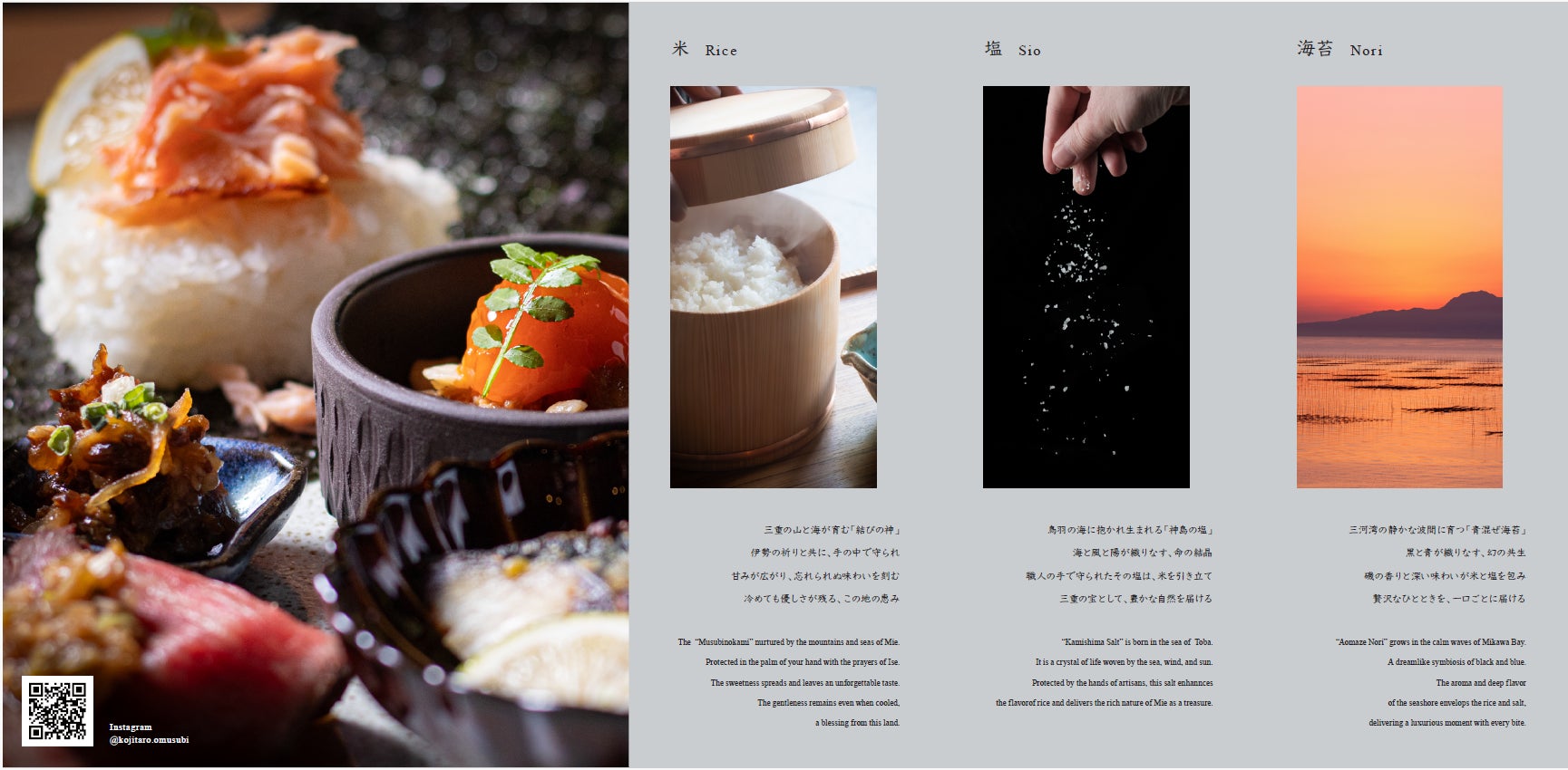 山と川と海… 東海三県の地形から生み出される伊勢湾の潮流はミネラルを豊富に含んだ海水で、神島の職人が手作業で9時間かけてじっくり煮詰めた自然の恵みを凝縮した奇跡の塩です。米の甘みを引き立て、味わいに深みを与える三重の宝をお召し上がりいただけます。