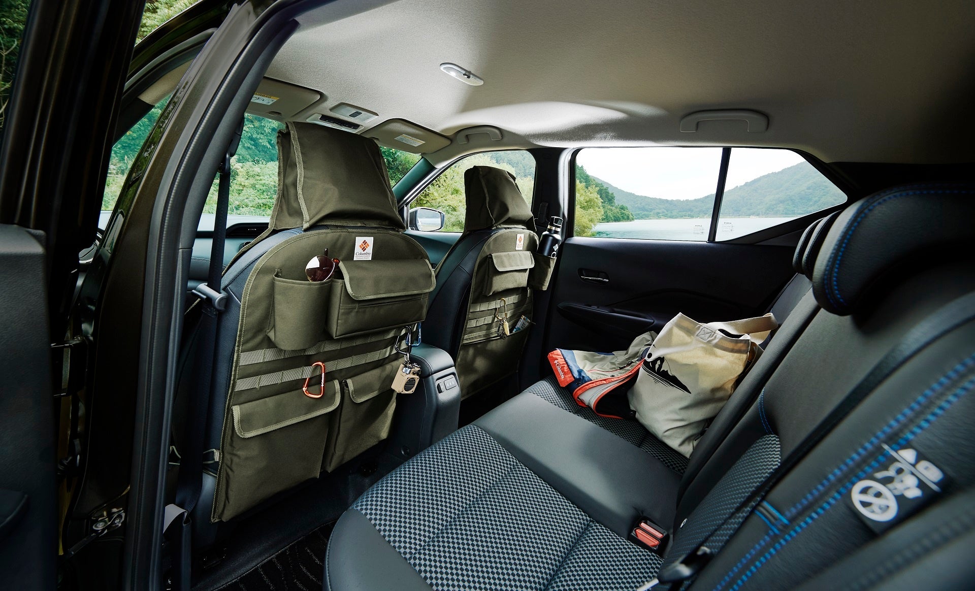 汚れたまま乗り込めるようフロントシートエプロンなどのインテリアアイテムには防水加工が施され、濡れたものや汚れたアイテムも気にせず詰めるラゲッジシートや、使いやすい大小のポケットやウェビングテープを備えた汎用性の高いシートバックポケットで収納性も抜群です。