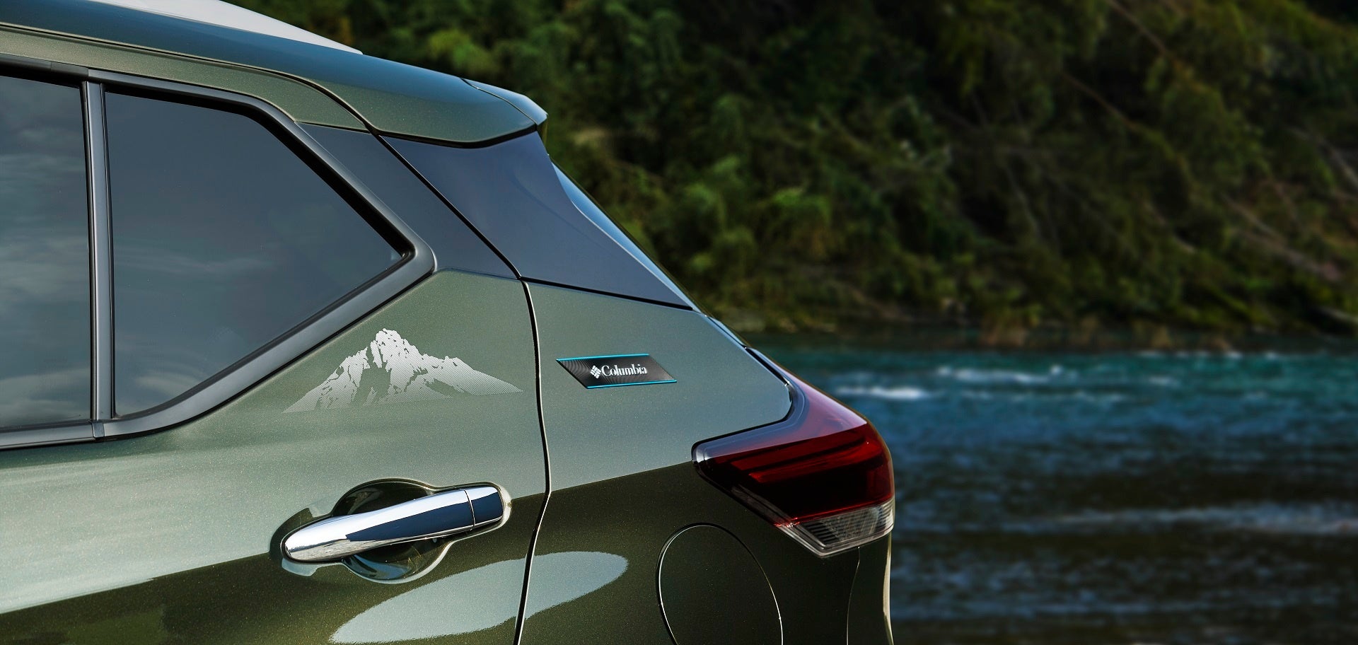 また、エクステリアデザインには、コロンビアのコーポレートカラーであるブルーを使った厚みのあるハイボスカル製のグリルステッカーとロゴステッカー、さらにオレゴン州最高峰のフッド山をデザインしたストライプのグラフィックステッカーを配しコロンビアの世界観を表現しています。