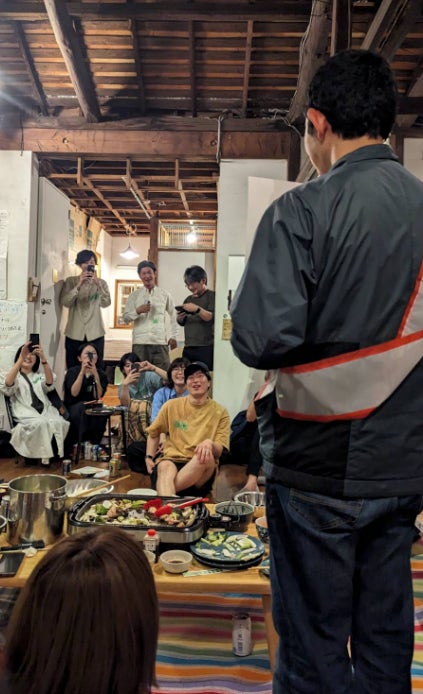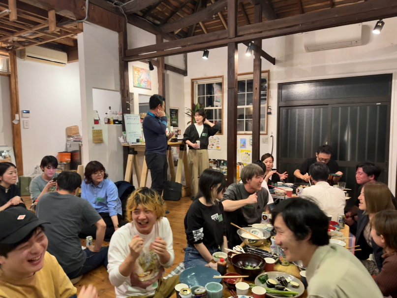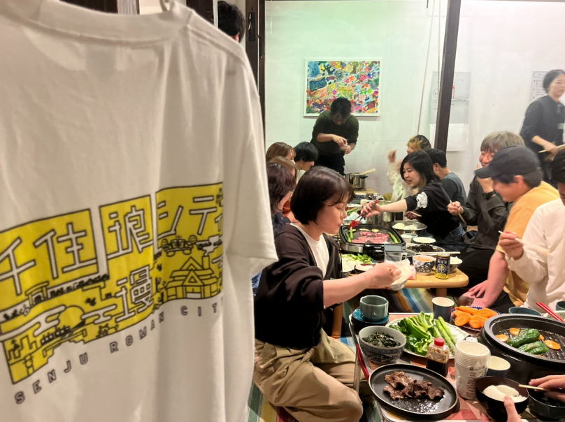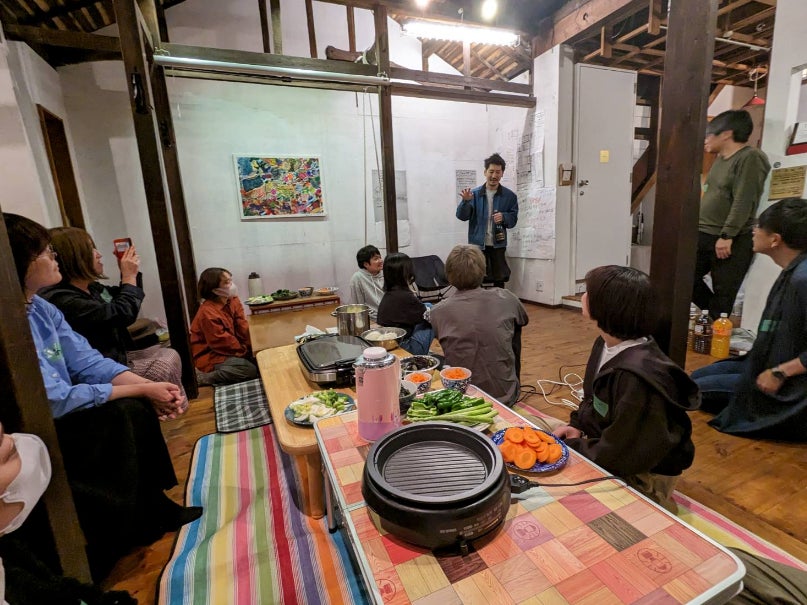 2023年3月〜4月にかけて実施した『千住浪漫シティ』発足のクラウドファンディングにて支援していただいた支援者と一緒に、当プロジェクトの完成披露セレモニーを行いました。北千住にある築80年の古民家“コーミンカン!”にて開催したセレモニーには、27名の参加者が来場し、イベントの参加特典である千住のお肉屋さんで買った焼肉やお酒とともに早速コミュニティらしい新しい繋がりもたくさん生まれ、会場は参加者の喜びの声と活気に溢れ盛り上がりをみせました。