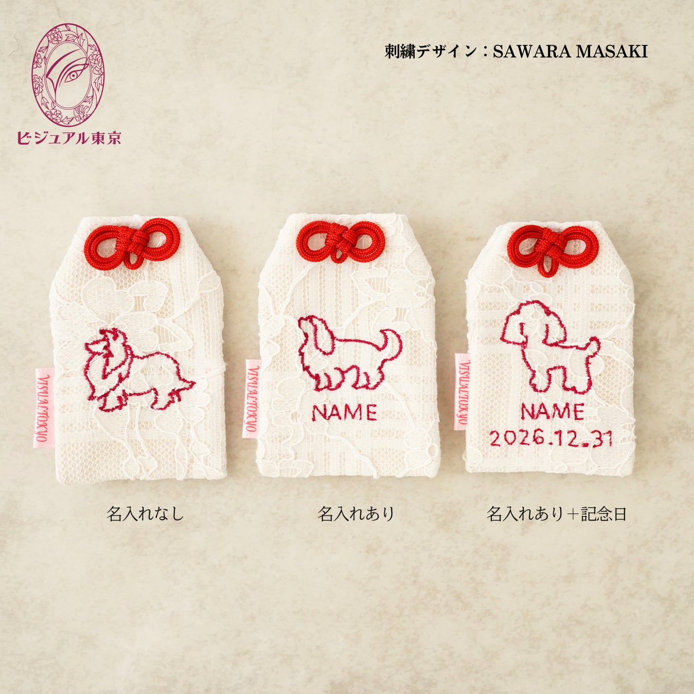 ビジュアル東京のお守りは、ニーズに合わせた刺繍カスタムが可能です。