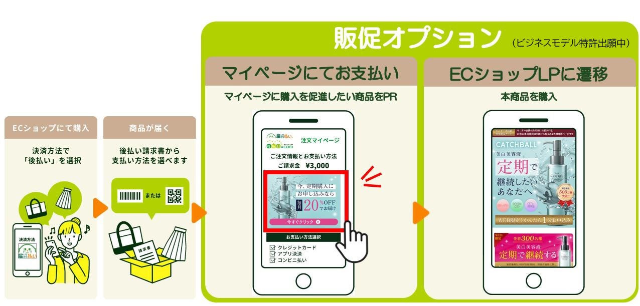 マルチ後払い決済サービス「届いてから払い」において、2023年5月18日より、新サービス「販促オプション(ビジネスモデル特許出願中)」の提供を開始いたします。「販促オプション」は、決済画面にバナー広告を表示できるサービスで、EC・通販事業者さまのさらなる売上が期待できます。