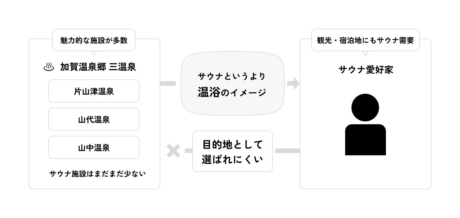 しかし、加賀市ではサウナ施設の設置にかかる負担が大きいため、サウナ施設が少なく、サウナファンから観光目的地として選ばれにくいという課題があります。