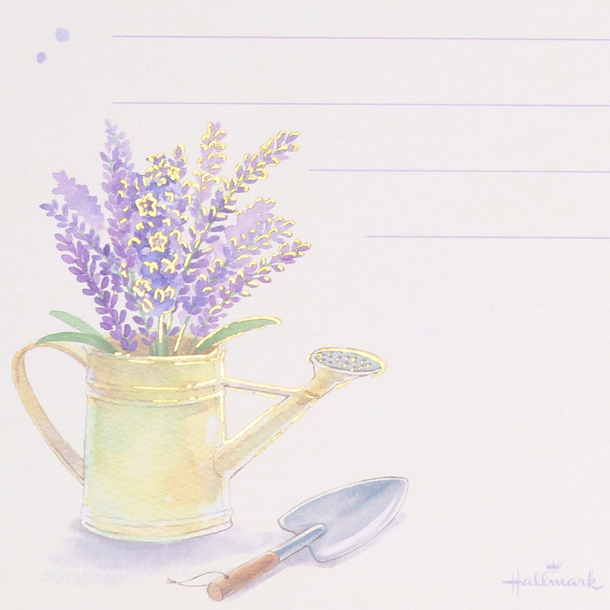 初夏シーズンのモチーフとして種類が増えつつあるラベンダー柄は、ジョウロやシャベルなどのガーデニング雑貨を描き、ナチュラルな暮らしをイメージさせるデザインに。水彩のふんわりとしたタッチで、ラベンダーの花弁を豊かに表現しました。