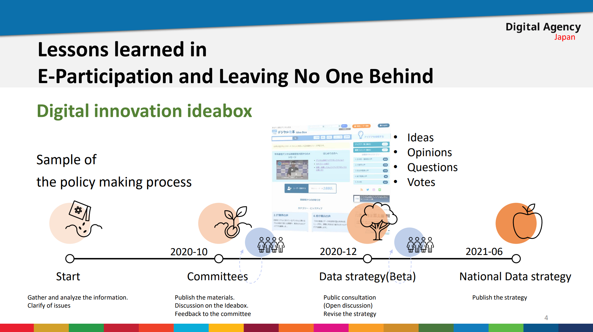 デジタル庁が国連で行ったGlobal E-Participation Workshopの資料に、弊社のアイデアボックスが日本政府において、10年以上の実績があり、市民参加の重要な役割を果たしたことが紹介されました。
