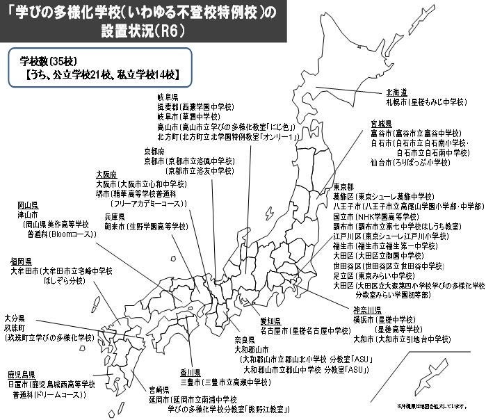 文部科学省ホームページ「学びの多様化学校(いわゆる不登校特例校)の設置者一覧」