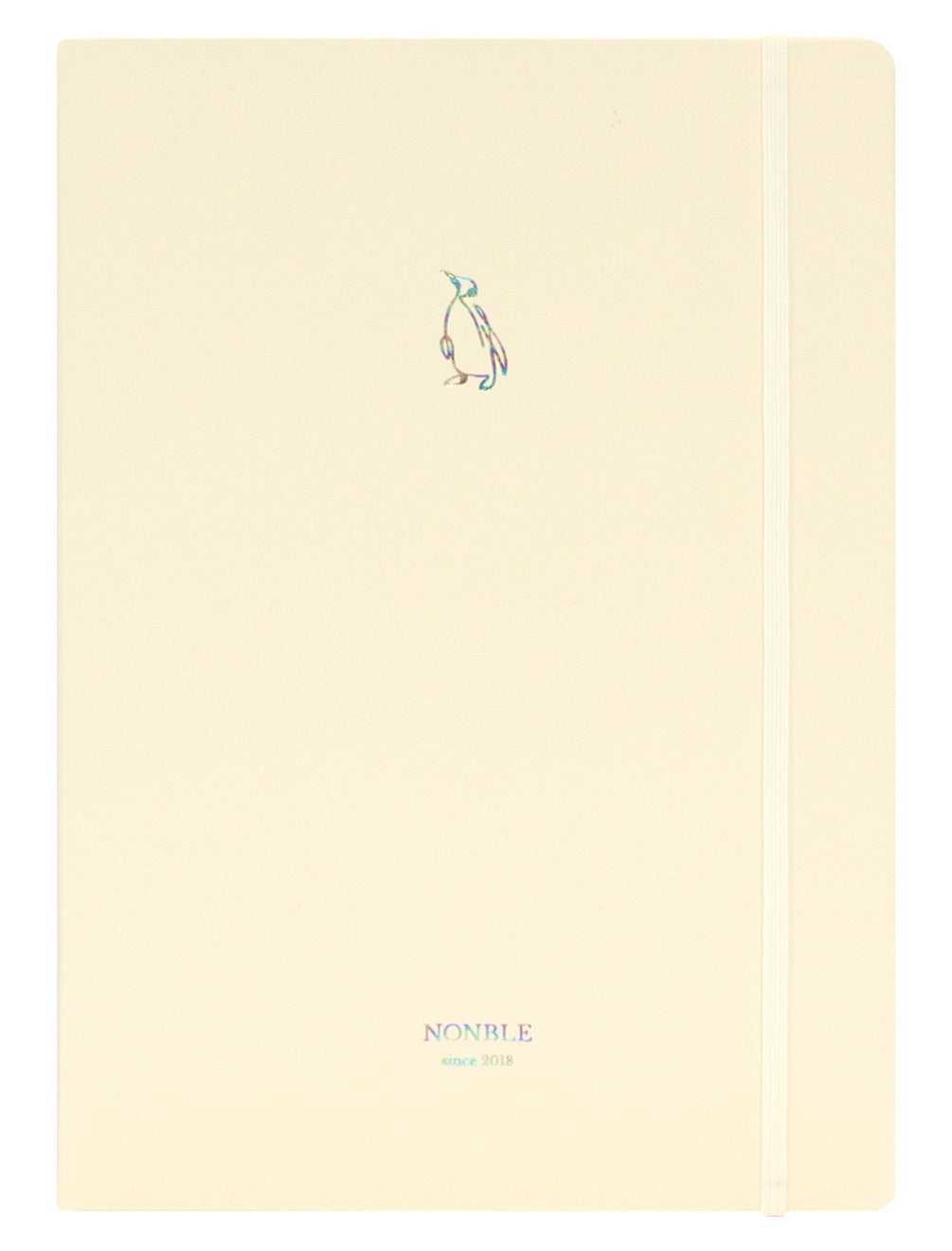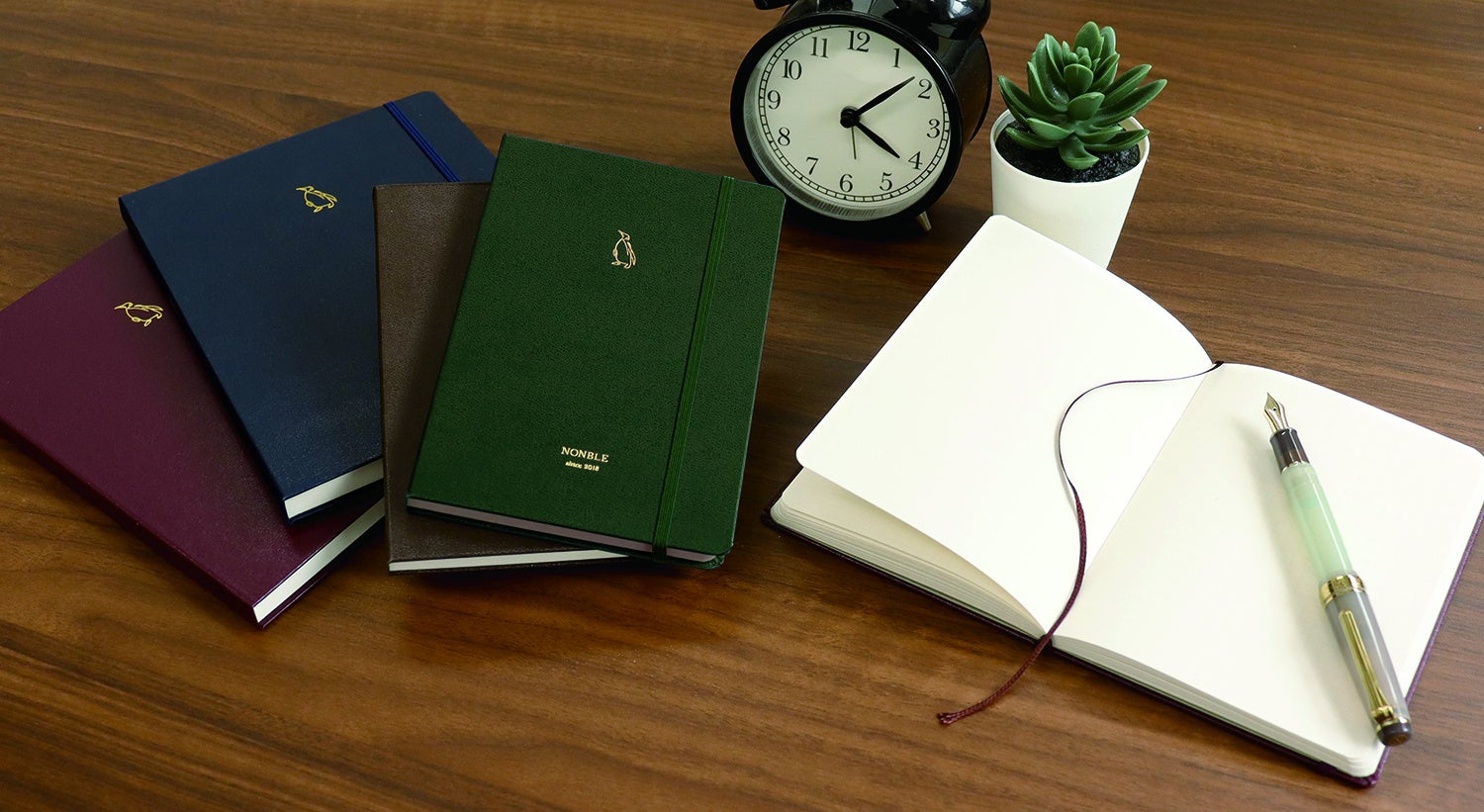 NONBLEはノート開発からスタートしたブランド。万年筆に適したインクの滲みにくいノートを作るコンセプトから始まりました。ブランドマークであるペンギンは、インクが滲む様子を羽のように広がることからfeatheringといいますが、その打ち消しでno feather=羽がない生き物、としてペンギンをメインシンボルにしました。