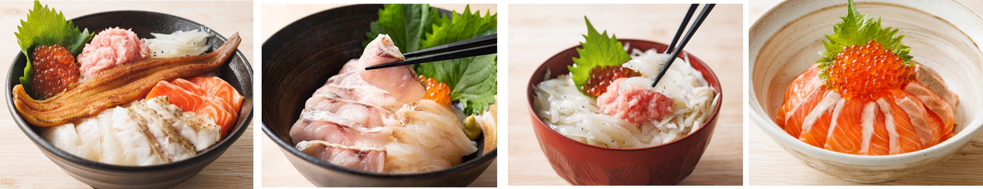 - 魚介グルメの王道!旬で新鮮な海鮮丼が勢ぞろい!