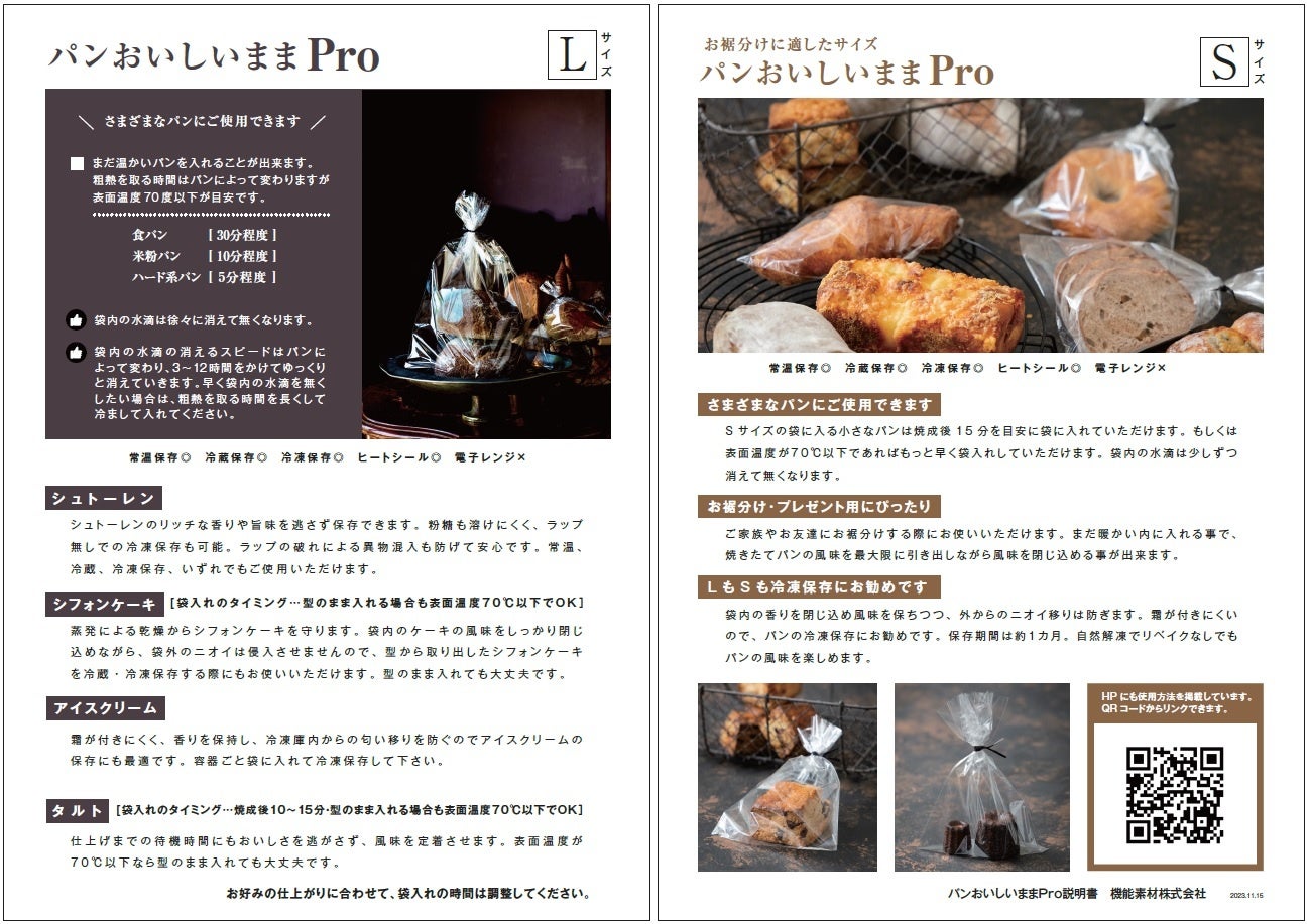 機能素材株式会社(高知県高知市、代表取締役:岡村岳尚)は、パンや焼き菓子を作る方に向けて大容量の「パンおいしいままPro」をL、Sの2サイズで新発売致しました。