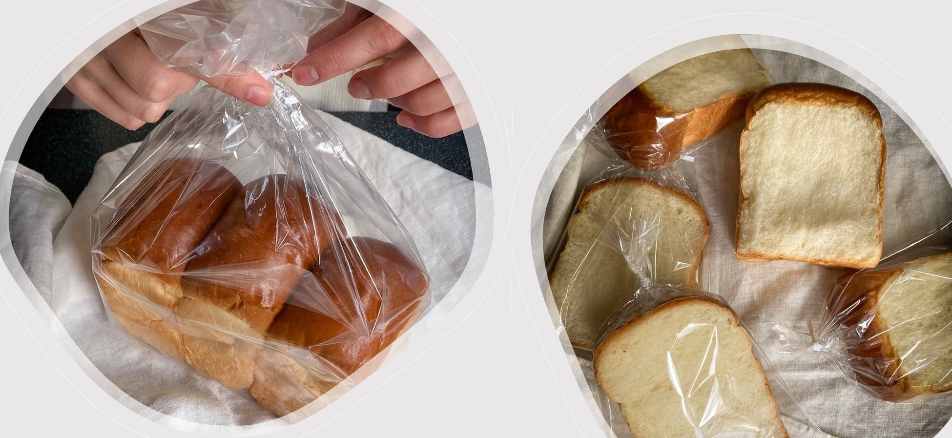 家庭の冷凍庫内からのニオイ移りを防ぎ、焼き立てパンの香りを守ります。風味や食感を損なわず、霜の成長を抑え冷凍パンの劣化を抑えます。