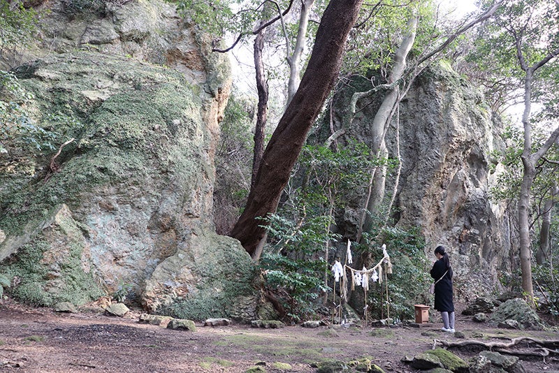 小伊津漁港からほど近い山中にひっそりと建つ、神秘的なパワースポットです。