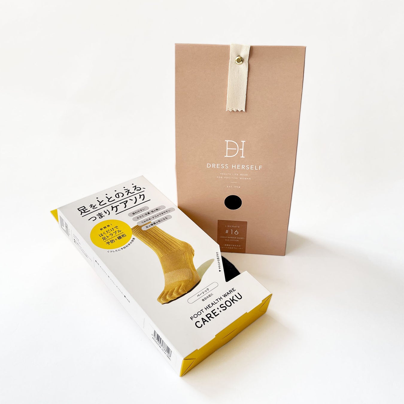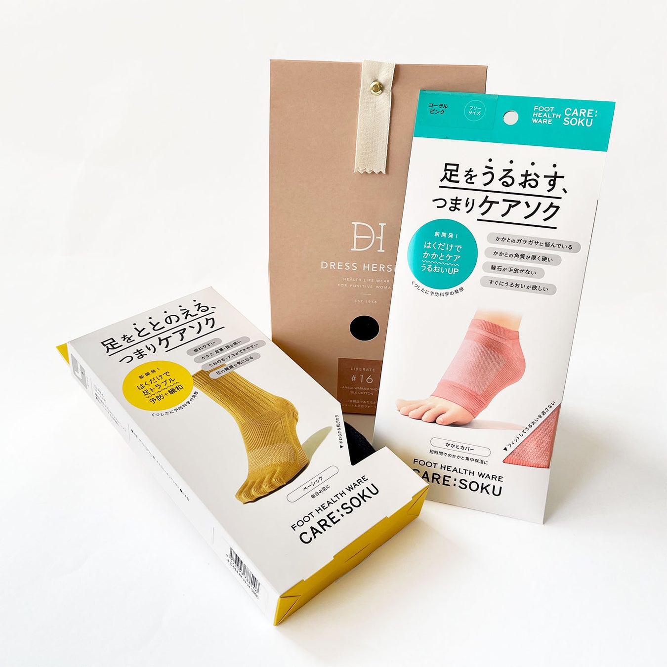 毎日を少しでも快適に、そして健康に。そんな願いをケアソクとDRESS HERSELFは足元から応援します。