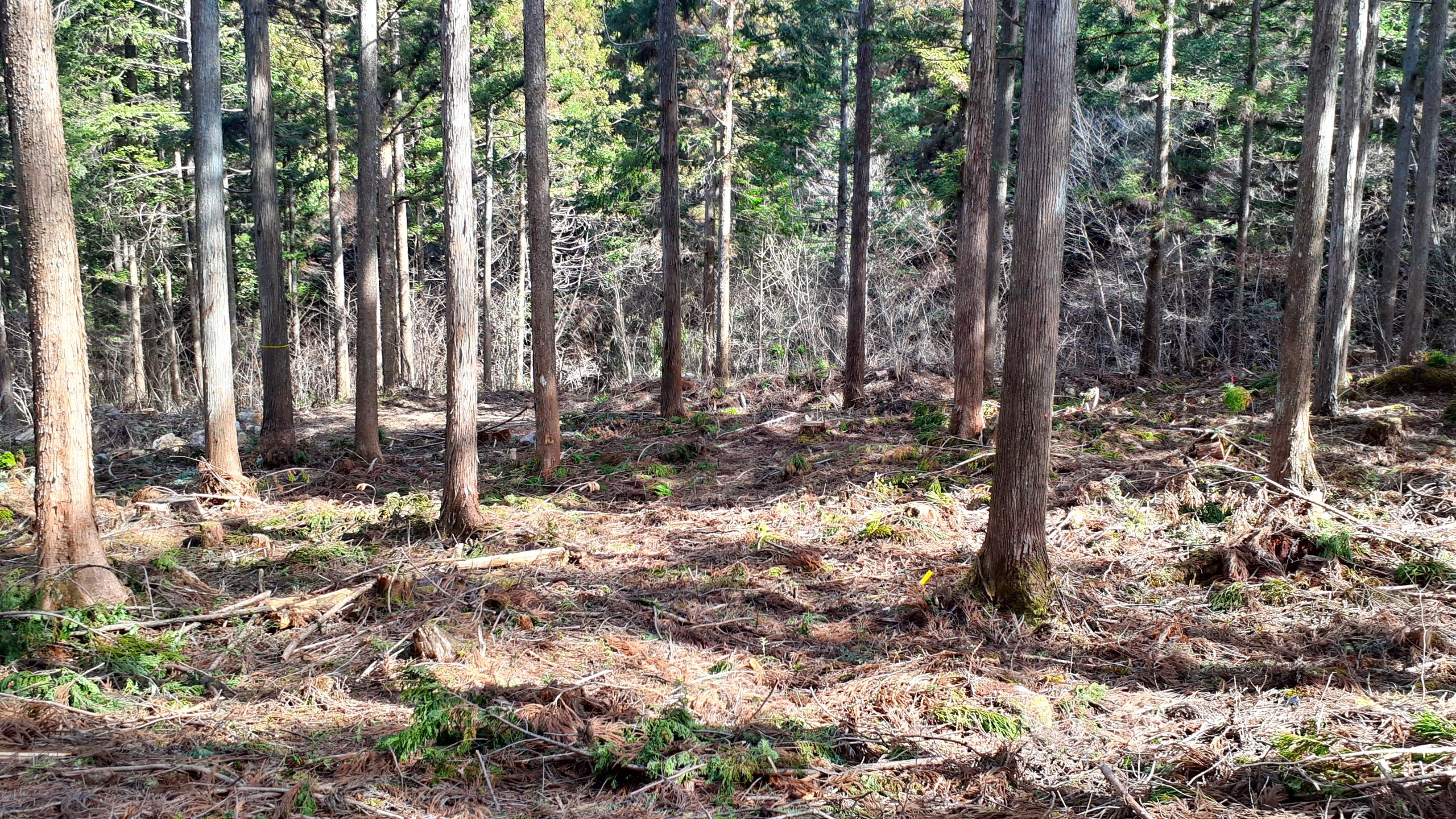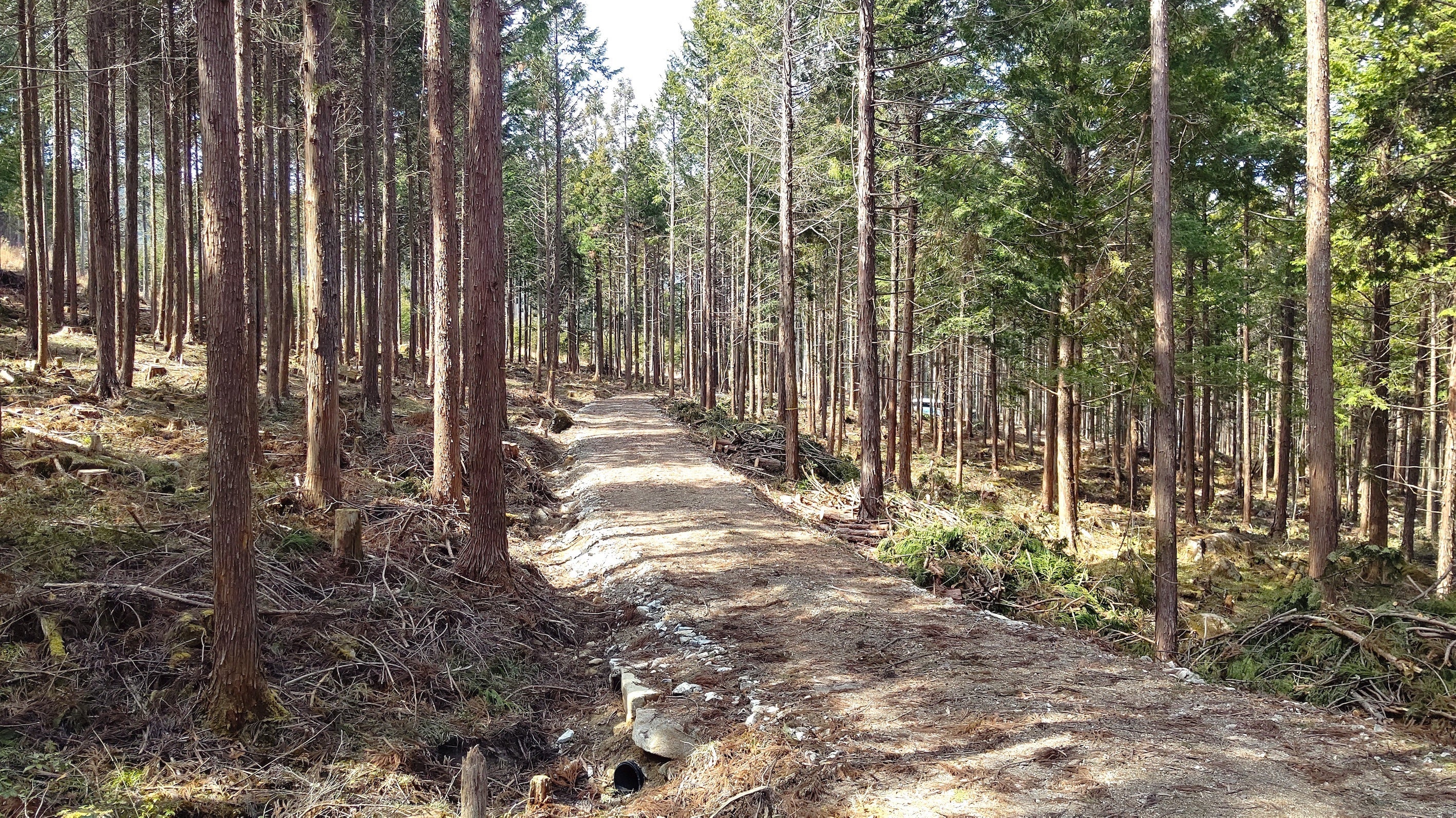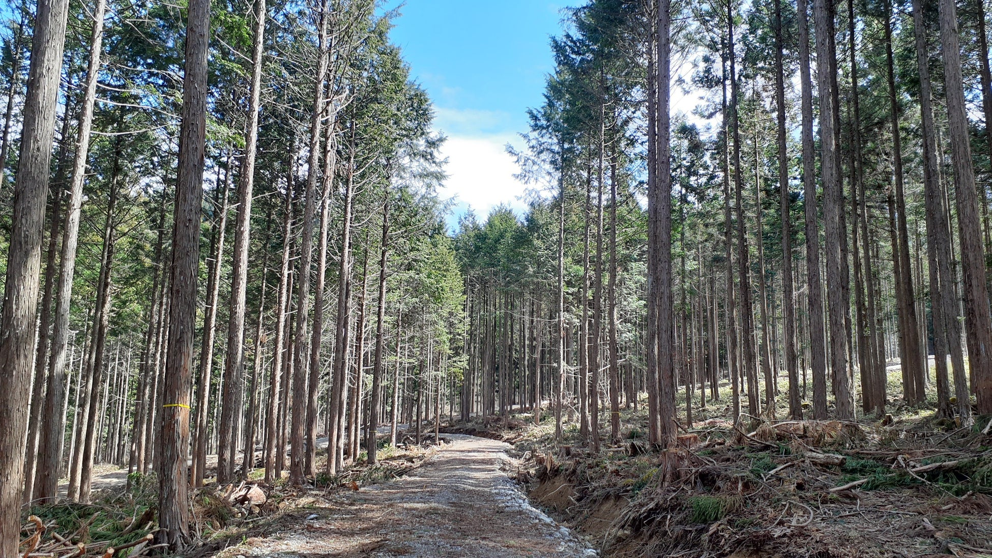 今回オープンする新エリアは東白川村が所有する村有林。少し前に間伐したばかりなので林内は明るく、薪やブッシュクラフトにできる丸太も落ちています。また、林道の幅も広く、通行しやすい場所です。