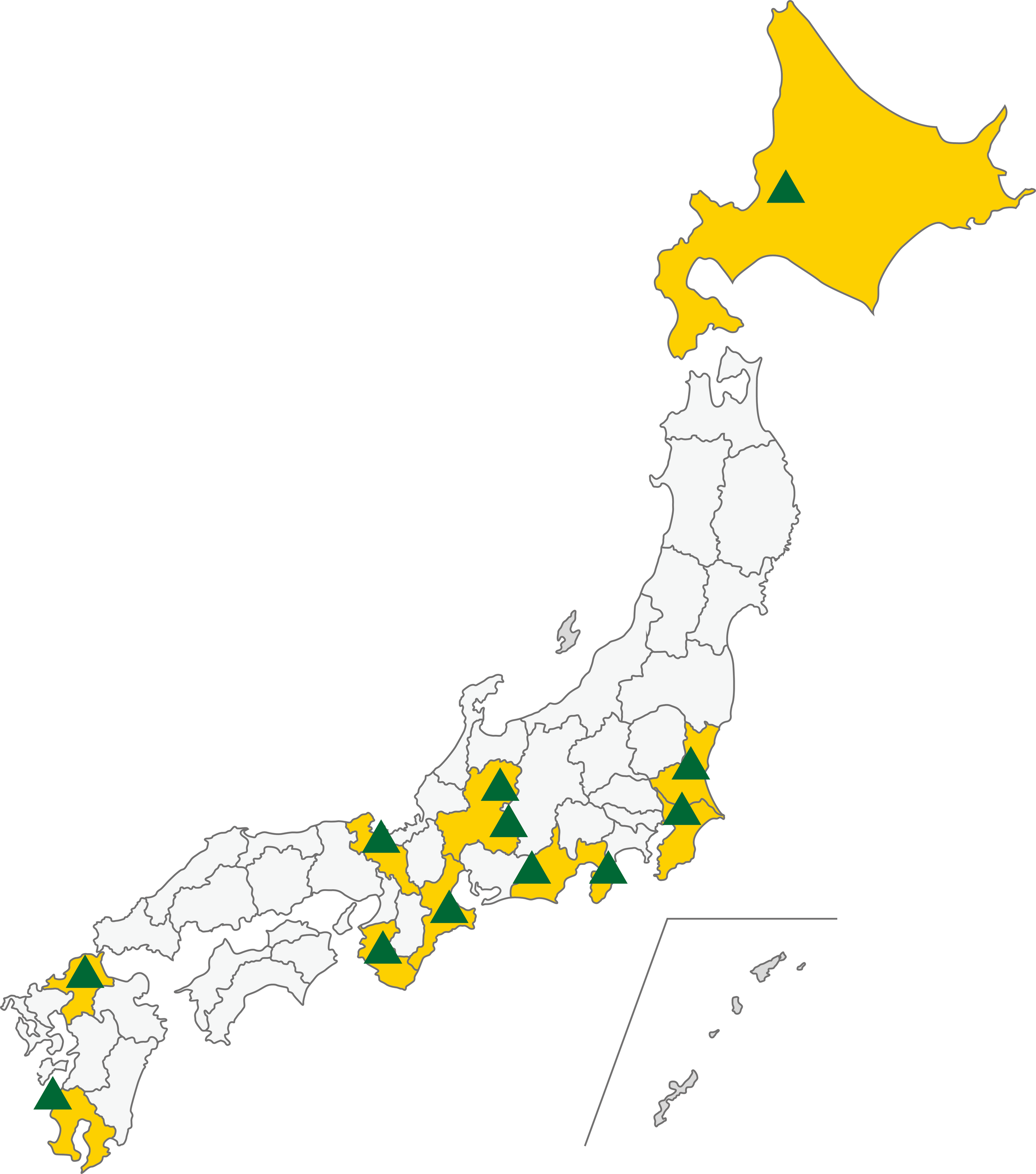 現在、forentaの森林レンタルエリアは10都道府県12箇所で展開しています。