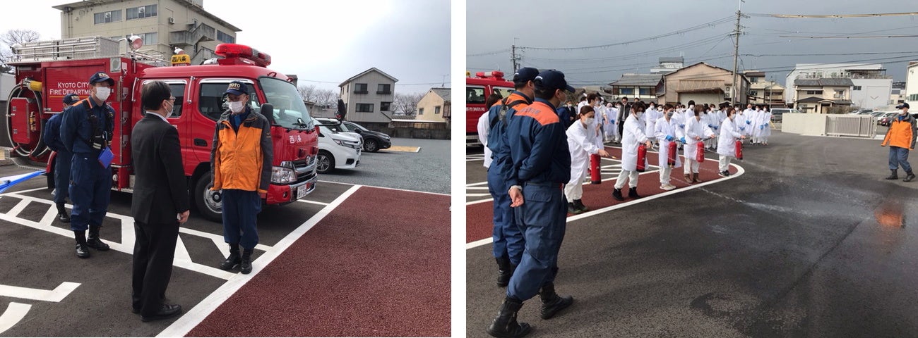 京都市南区は幅広い業種の企業が集結する「ものづくりのまち」でもあります。吉祥工場の歴史はまだ浅いですが、私たちの防火・防災に対する知識の成長が地域社会に貢献できると考え、今後も精力的に取り組んでまいります。(コスメディ製薬 工場長:岡本 好功)