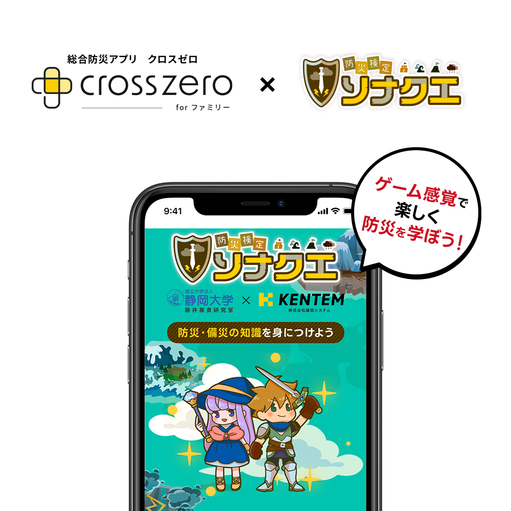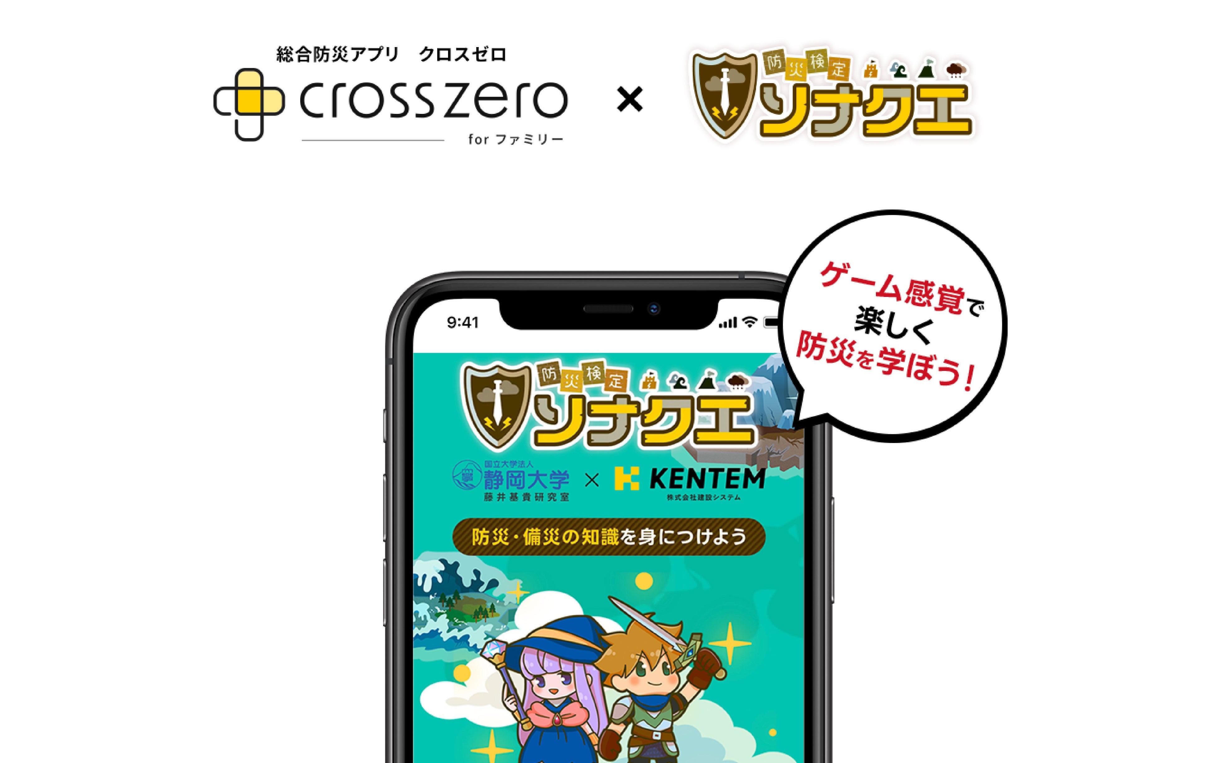 防災を楽しく学べるサービス「防災検定ソナクエ」が、総合防災アプリ「クロスゼロ」に導入!