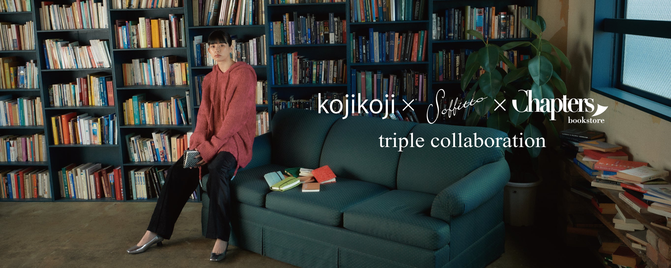 本コラボレーションは、Chapters書店・soffitto・kojikojiのメインのお客様/ファン層である2~30代の忙しく働く女性たちに、もっと気軽に読書を楽しんで欲しいという願いの元、約1年の時間をかけて大切に準備を進めて参りました。書店閉店のニュースが全国的に相次ぐ中、読書との接点を広くライフスタイルの視点から創出し、読書好きはもちろん読書から離れてしまった方にも広くお楽しみ頂けるようと、書店・アパレル・音楽が一体となり実現に至っております。