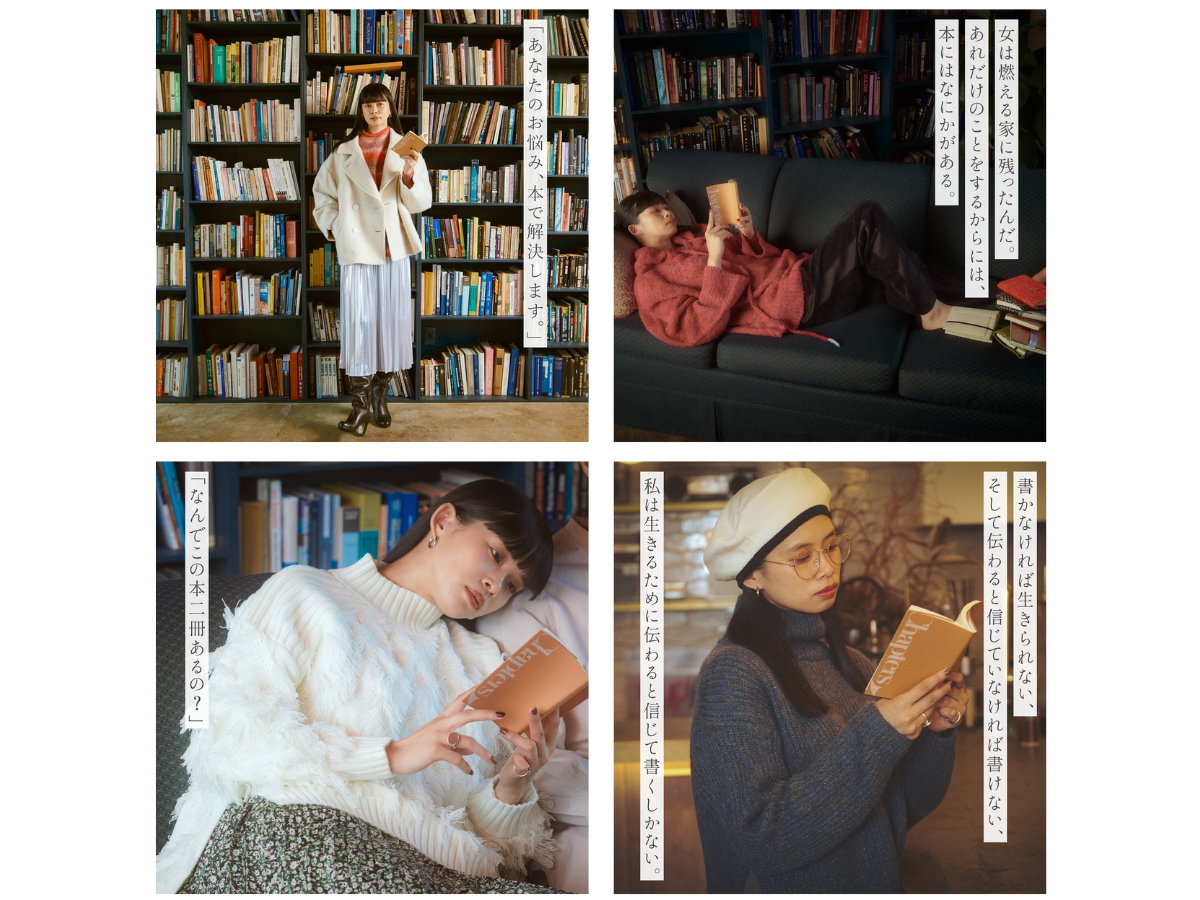 今回のクリエーティブは、作品の世界観をSoffittoのルックで表現しました。それぞれ4作品の特徴を捉えたルックで、「読書の秋」の本選びをお楽しみください。