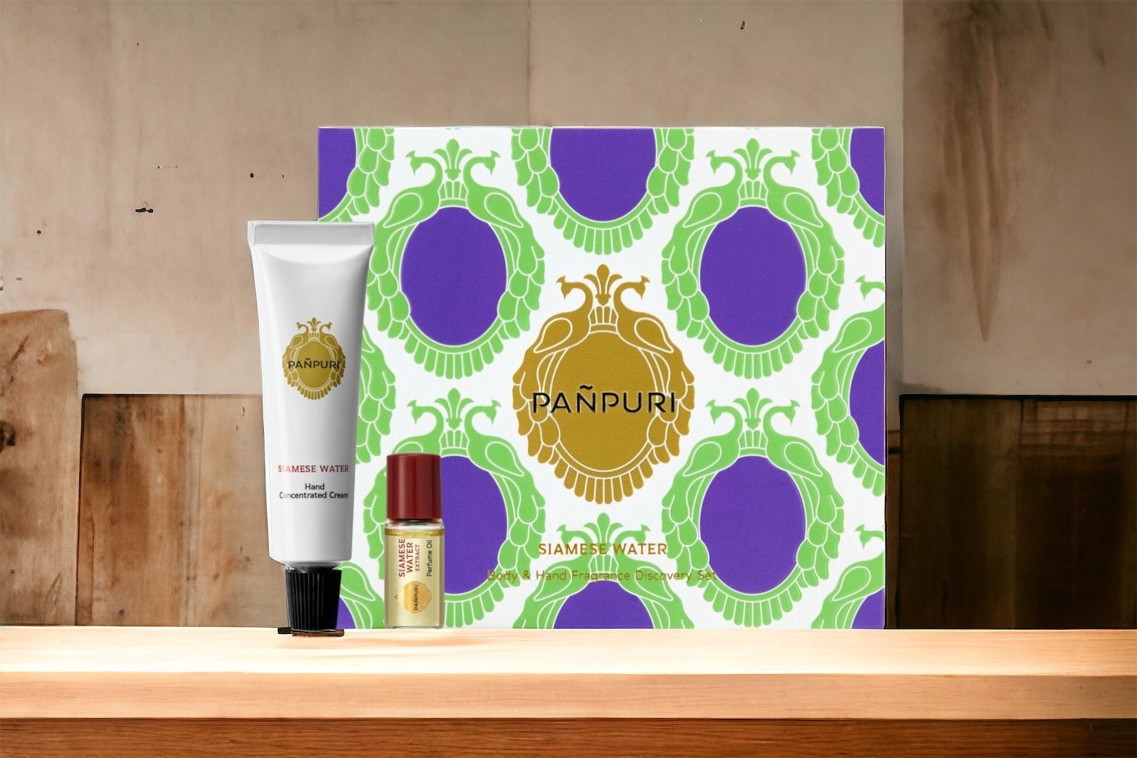 ブランドで最初に生まれた一番人気の香り、「サイアミーズウォーター」をお試しいただける香りのデュオセット。「サイアミーズウォーター」は、水瓶に貯めた雨水にジャスミンの花びらを浸しておき、そのフレグランスウォーターで来客をもてなすというタイの伝統にインスピレーションを得て生まれた香り。驚くほど軽いテクスチャーでベタつかないのにしっかり潤う香りのハンドクリーム 10mLと、長時間香りが続くヴィーガン処方のオイル香水・エクストラクトパフュームオイル 3mL。大人気商品を数量限定のミニサイズでお楽しみください。