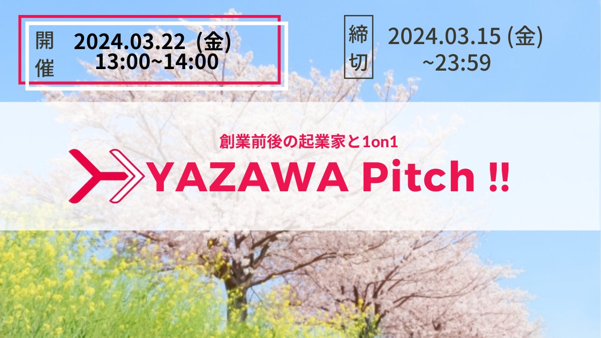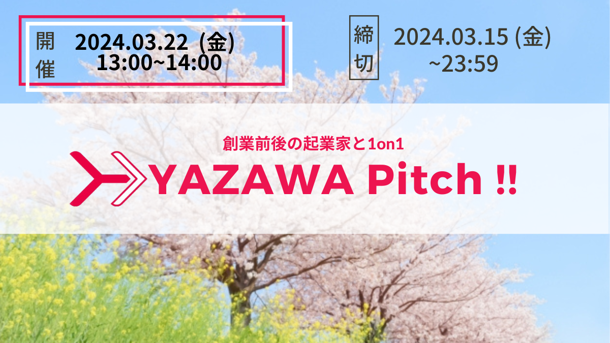 シード特化の独立系VCであるYazawa Venturesは、ピッチイベント『YAZAWA Pitch !!』を開催いたします。