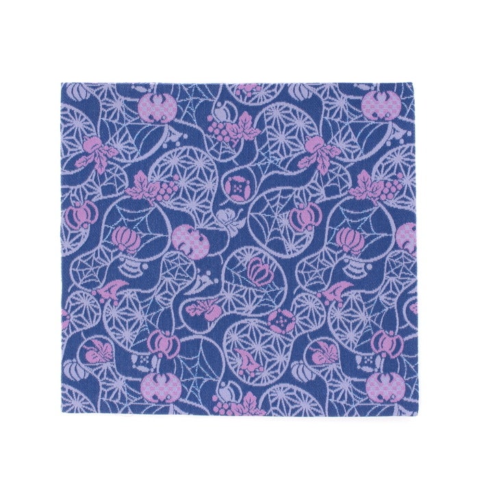 「吉祥かくれんぼ」は、「一年の収穫を祝う祭」が起源といわれるハロウィンを、日本の文様と組み合わせて和の収穫祭として表現した新柄です。かぼちゃ、蝙蝠(こうもり)、蜘蛛の巣といった、ハロウィンにゆかりのある縁起の良いモチーフを、和の吉祥文様である宝尽くしや麻の葉と組み合わせて、それぞれの文様がまるでかくれんぼをしているかのような楽しさ溢れるデザインに仕上げました。