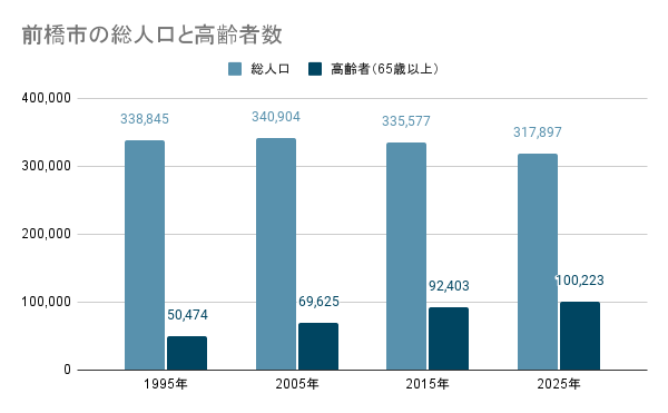 群馬県では現在4人に1人が高齢者となっており、2025年には3人に1人になると予想されています。