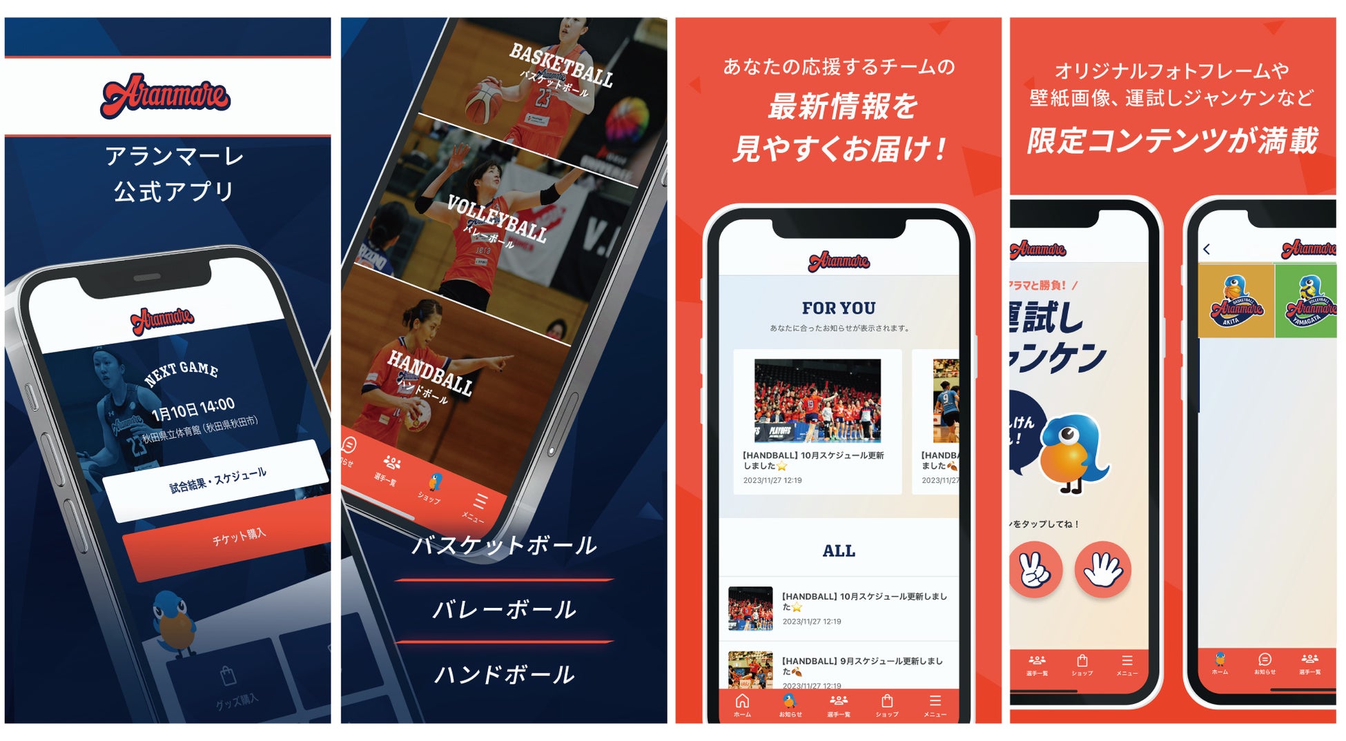 公式アプリでは、選手情報や試合スケジュールなどアランマーレに関する情報をいつでも、どこでも手軽に確認することができます。