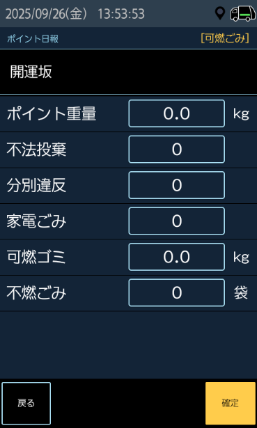 収集地点での不法投棄、排出重量、給油量、ドライバーの休憩時間など、これまで手書きメモで持ち帰っていた報告事項を、停車時に現場にてタッチパネル形式で感覚的にモニターに入力できます。これにより、事務所に帰ってからの日報作成業務が不要になります。